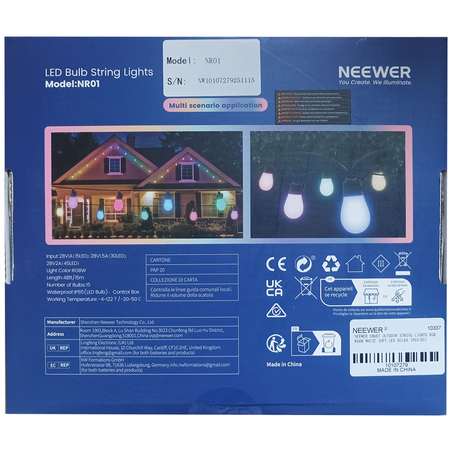 Diese Lichterkette eignet sich ideal für Weihnachtsdekorationen, Terrassenbeleuchtung, Pavillons, Pergolen, Hinterhöfe, Balkone, Außenbereiche von Bistros, Cafés und Bars, Gärten, Terrassen oder als permanente Außenbeleuchtung. Mit über 50 voreingestellten Szenen aus den Bereichen Alltag, Feiertage, Emotionen und Natur sowie kontinuierlichen Updates für weitere Effekte lassen sich die dekorativen Lichterketten für den Außenbereich über die Neewer Home App individuell anpassen. Über Bluetooth verbindest du dich mit der App und erlebst eine umfassende und effiziente Beleuchtungssteuerung.