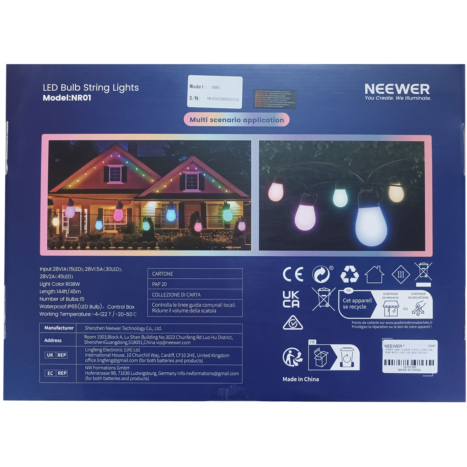 Die Neewer LED-Lichterkette NR01-45 mit App-Steuerung ist eine smarte, 45 Meter lange Lichterkette, die mit faszinierenden RGBW-Effekten und individueller Steuerung jede Umgebung in eine stimmungsvolle Wohlfühloase verwandelt. Jede der 45 dimmbaren RGBW-Lampen verfügt über eine Farbtemperatur von 2700K bis 6500K und eine Helligkeit von bis zu 80 Lumen pro Lampe, wodurch ein sanftes Leuchten und eine warme, gemütliche Atmosphäre entsteht und jede Lampe einzeln auf verschiedene Farben eingestellt werden kann.