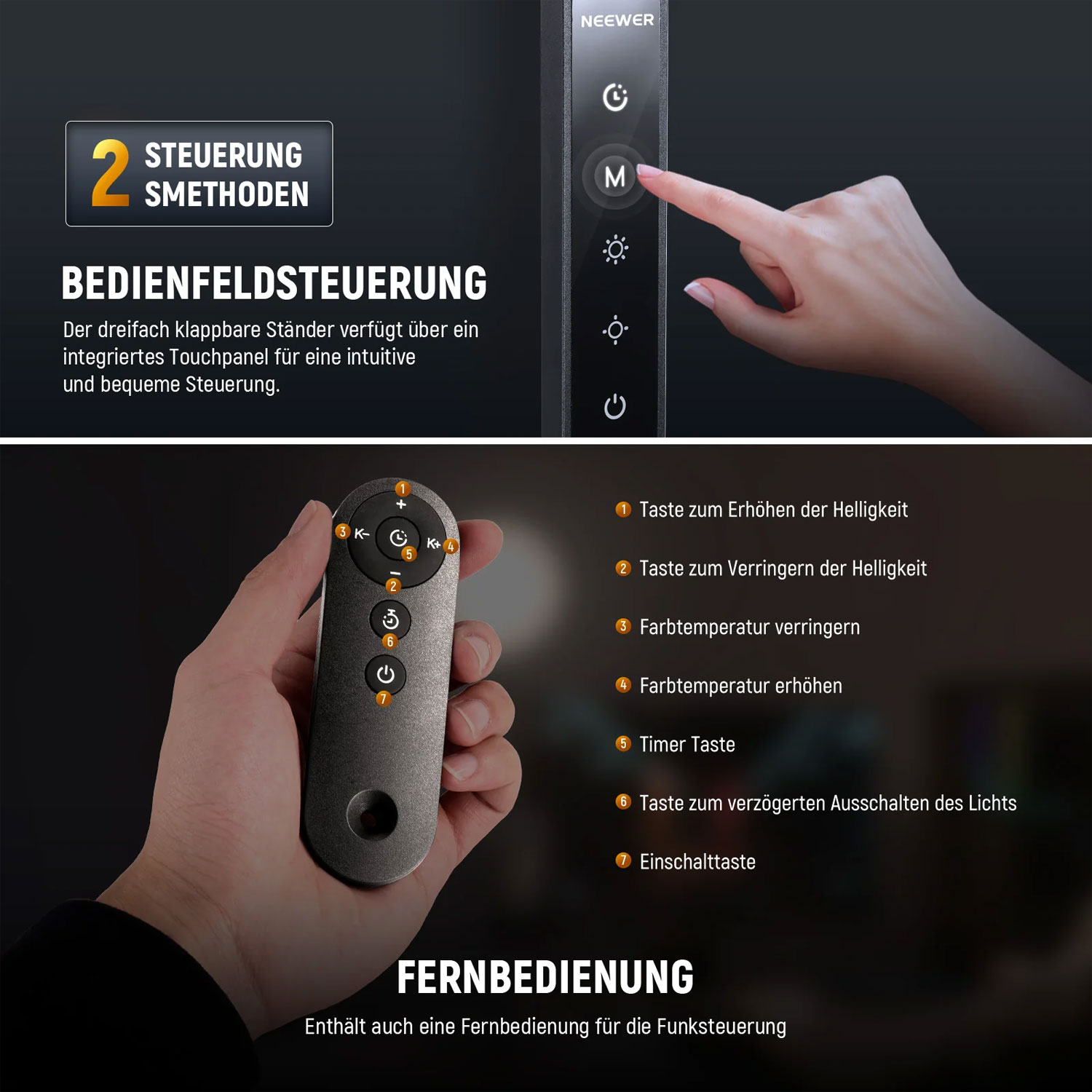 Angeschlossen an das mitgelieferte Netzteil bietet das R18 eine zuverlässige und konstante Lichtleistungfür lange Streaming-Sessions, Zoom-Meetings, die Produktion von Social-Media-Content für TikTok oder YouTube, Online-Unterricht oder Beauty-Tutorials. Mit seinem schlanken, modernen Design und der platzsparenden Bauweise ist das Neewer R18 die ideale All-in-One-Beleuchtungslösungfür Einsteiger und Fortgeschrittene, die Wert auf einfache Handhabung und professionelle Ergebnisse legen.