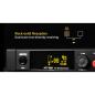 Das OLED Display auf der Vorderseite zeigt alle wichtigen Parameter an, wie den Batteriestatus des Senders, die Frequenzgruppe, den Audiopegel, Low-Cut Filter oder die Audioempfindlichkeit. Daneben befindet sich ein Drehregler mit dem die Funktionen und Parameter eingestellt werden können.