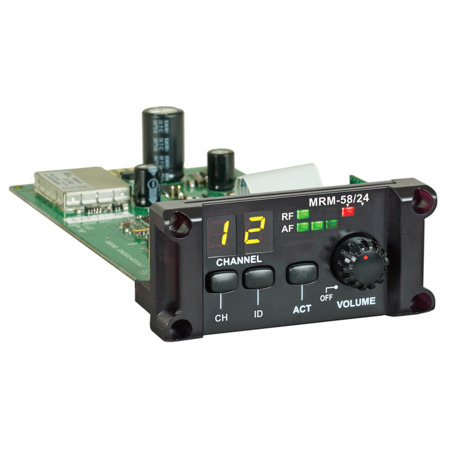 Diese Version wird mit dem MRM-58 1-Kanal Empfangsmodul geliefert. Das Modul empfängt Signale im anmeldefreien Frequenzbereich von 5,725 - 5,850 GHz. So kann ein weiteres Mikrofon oder Headset drahtlos verbunden werden.