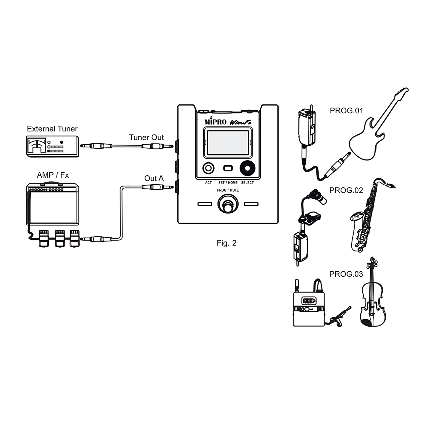 Der Pedal-Empfänger bietet zahlreiche Funktionen und zugleich eine einfache sowie flexible Bedienung. So können Sie etwa Audiosignale von Musikinstrumenten mit Funktionen versehen und an einen Verstärker oder Mischpult senden.