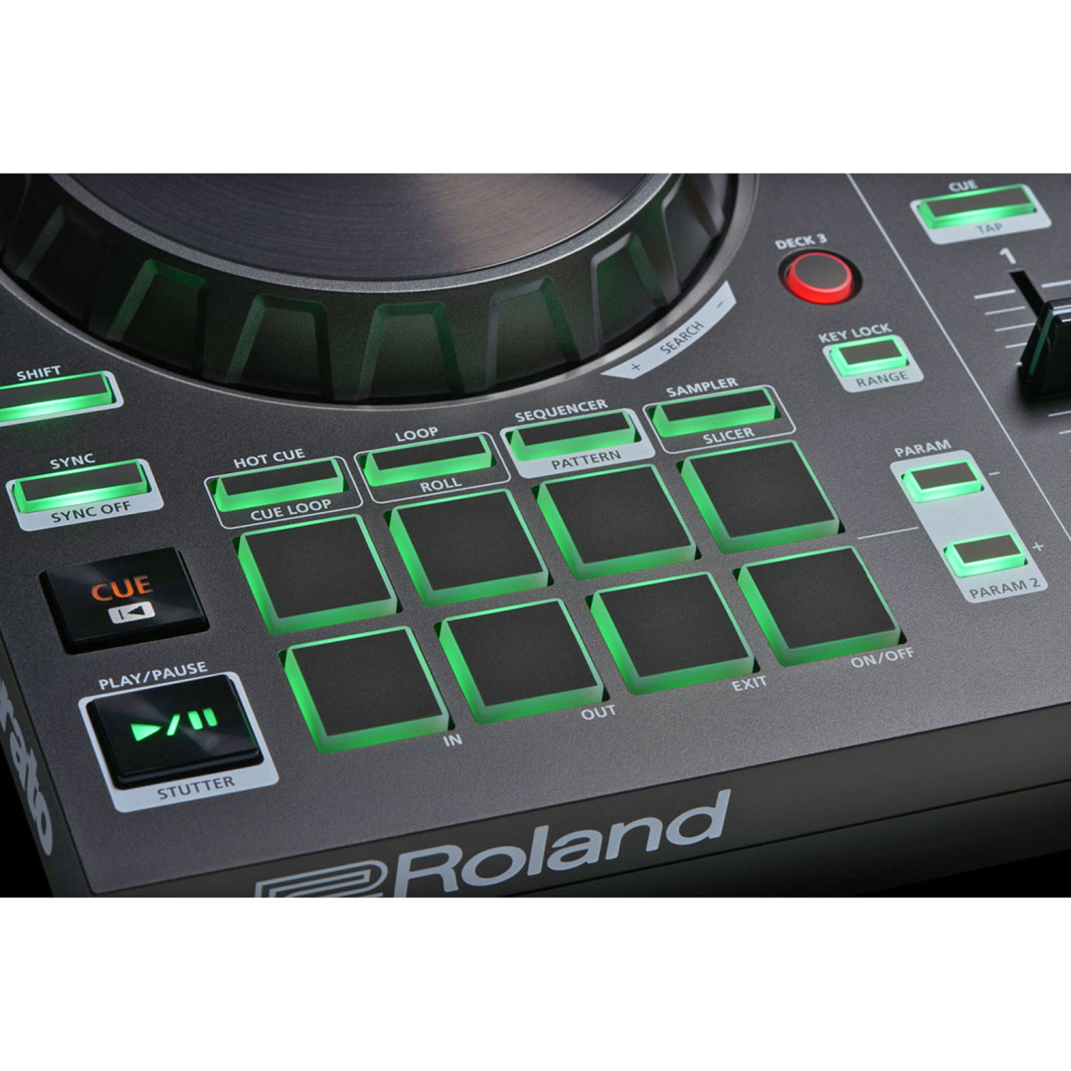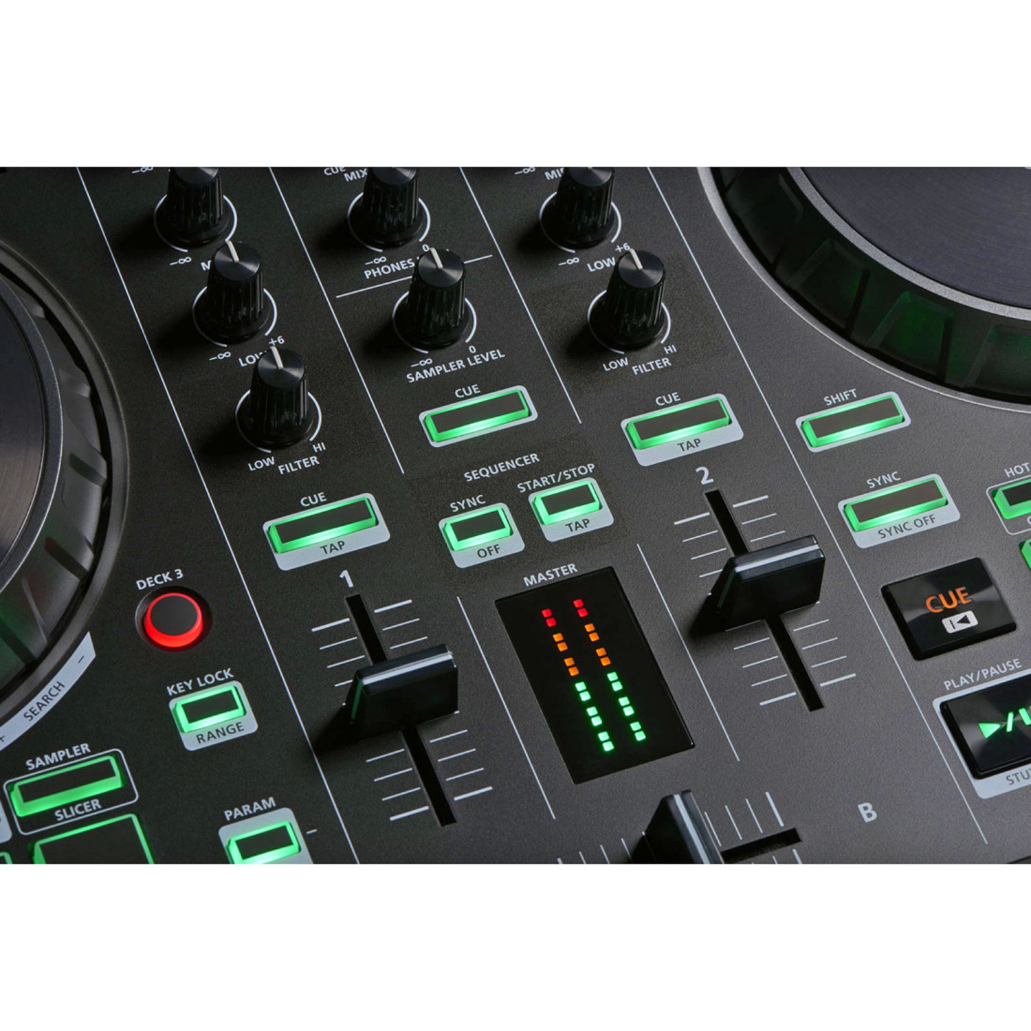 Mithilfe der zugeordneten Steuerelemente für Serato DJ Intro können Hot Cues, Loops und Samples schnell erzeugt und getriggert werden.Die fest zugeordneten Play/Pause- und Cue-Buttons sorgen zudem für eine direkte Kontrolle.