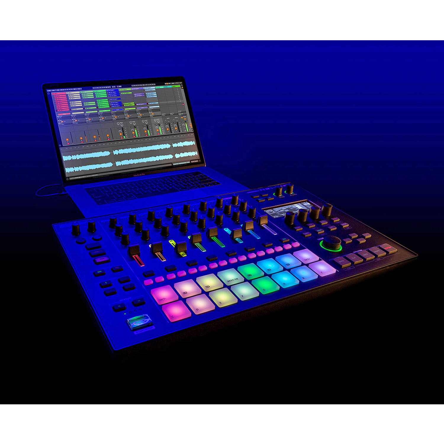 Zahlreiche Regler und Controller bieten eine umfangreiche Steuerung. Jede Spur hat einen eigenen Fader, um Parts direkt zu mischen oder anzuordnen.