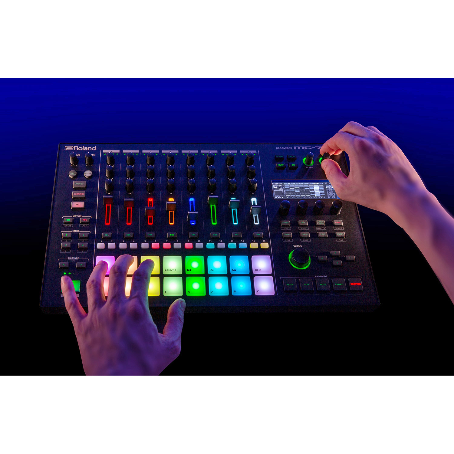 Der 8-Spur Sequenzer wurde für reibungslose Produktionen optimiert. Mit dem TR-REC Step-Sequenzer können Parts aus den klassischen Roland Drum Machines erstellt werden. Mithilfe der 16 anschlagsempfindlichen Pads können Drum-Parts, melodische Basslines und polyphone Akkord-Progressionen gespielt und aufgenommen werden. Weitere Tools wie Note Repeat, Chord Designer und Step LFO lassen der Kreativität freien Lauf.
