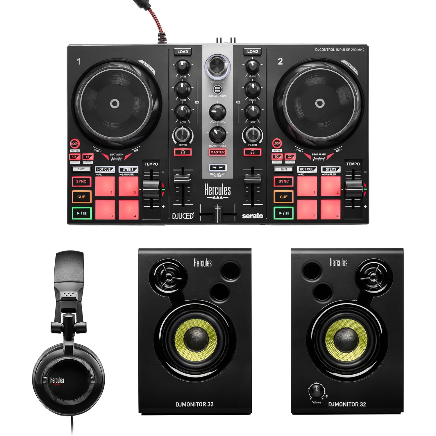 Das Hercules DJLearning Kit MK II ist der perfekte Einstieg in den DJ-Bereich - das Set besteht aus dem Hercules Inpulse200 2-Deck USB DJ-Controller mit eingebautem Audio-Interface, dem HDP DJ45 DJ-Kopfhörer, einem Paar DJ-Monitor-Boxen und der DJUCED 40° DJ-Software zum Mixen deiner Tracks.