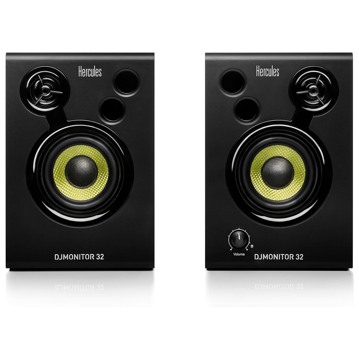 Die Hercules DJ Monitor 32 Boxen eignen sich perfekt für den Einstieg in die DJ-Welt und für kompakte Set Ups. Trotz der geringen Größe von nur 195 x 135 x 155 mm (HxLxD) stehen die Boxen größeren Modellen in Sachen Ausgangsleistung und Qualität in nichts nach. Der 3 Zoll große Tieftöner sorgt für den nötigen Bass und wird durch den versetztem Hochtöner ergänzt. Die Dual-Bassschächte verleihen dem Sound Offenheit und Klangtiefe.
