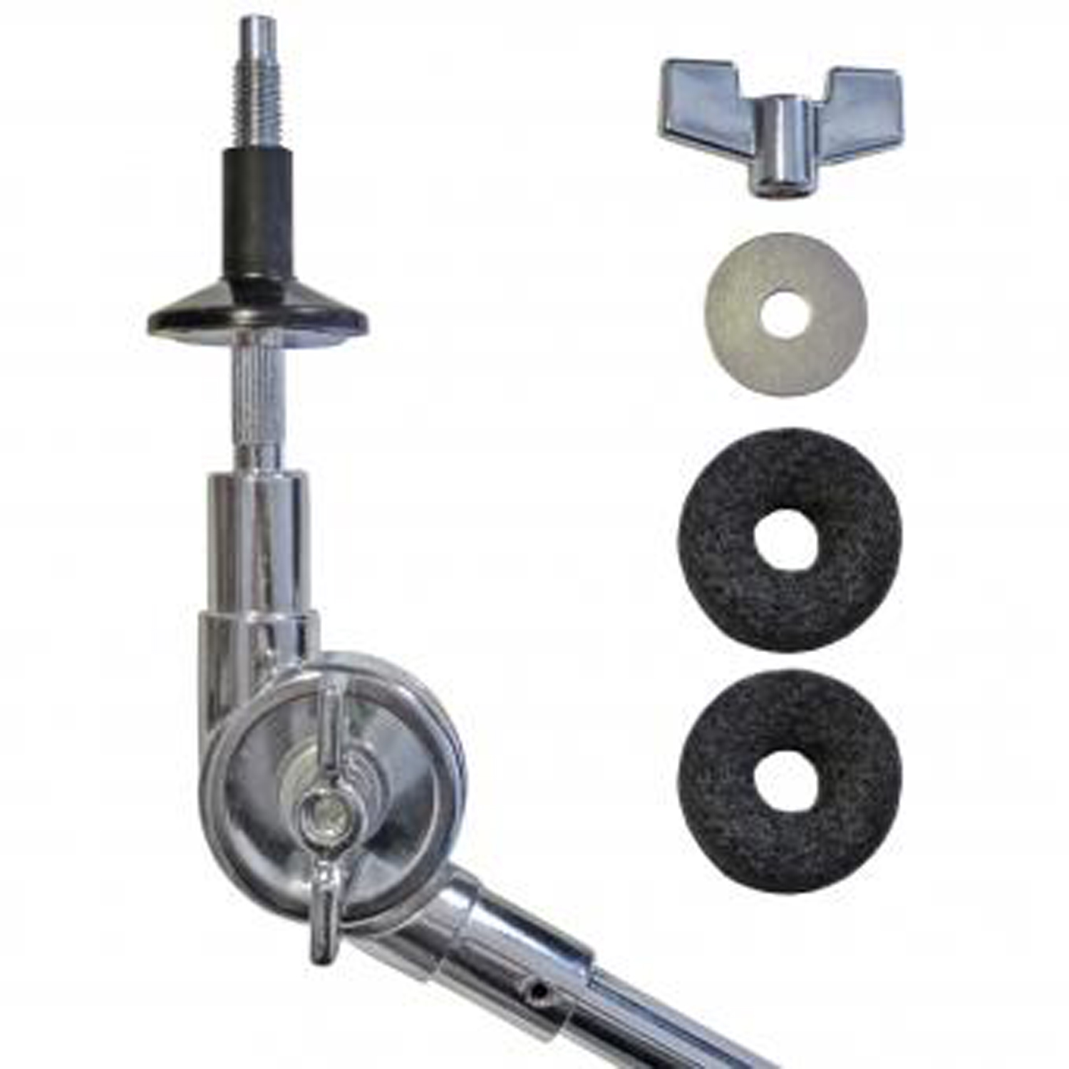 Die robuste Multi-Klammer kann problemlos an allen gängigen Hardware-Stativen montiert werden. Die großen Flügelmuttern bieten ein angenehmes Handling und starken Halt für den Arm. Der Winkel des Beckens ist dabei stufenlos verstellbar. Die Beckenhalterung verfügt über einen Kunststoff Beckenschoner und wird inklusive zwei Beckenfilzen ausgeliefert.