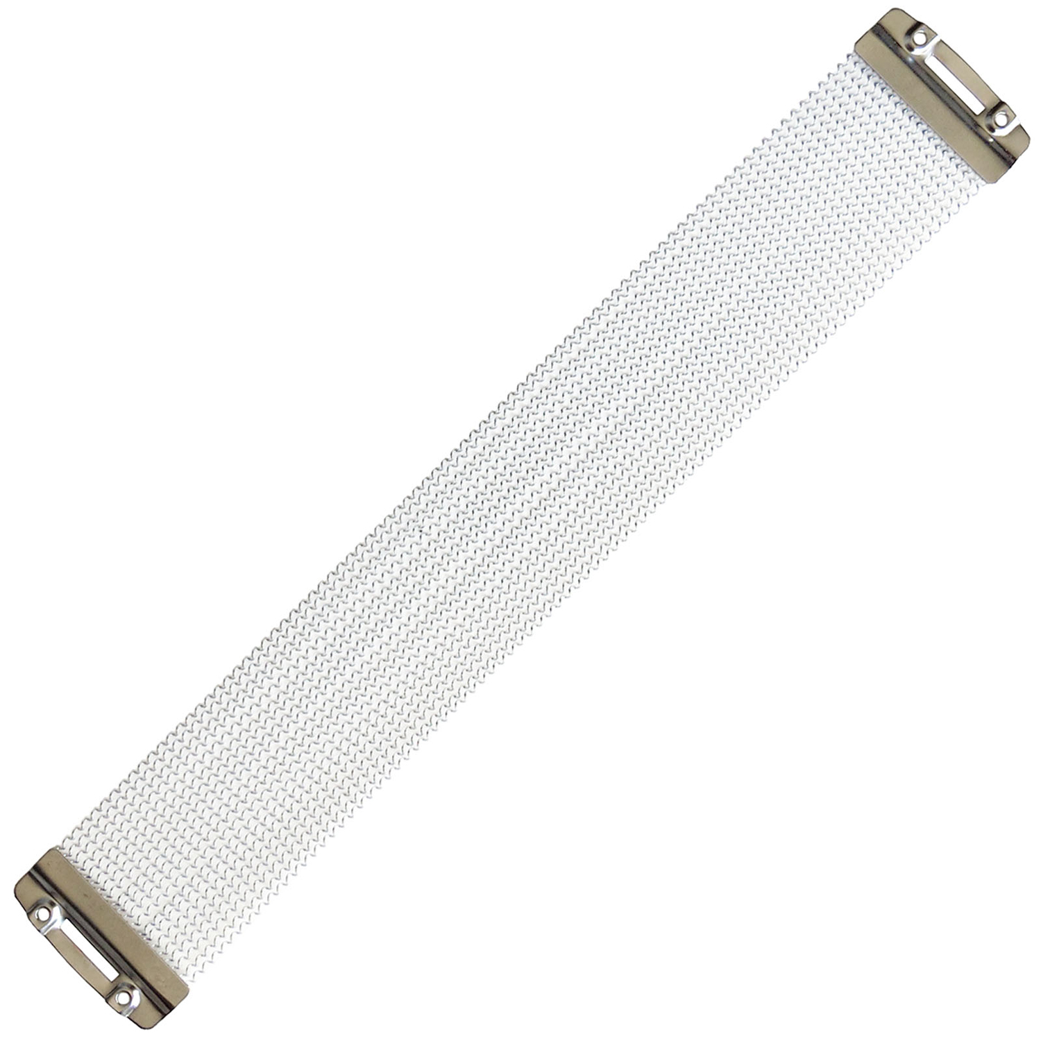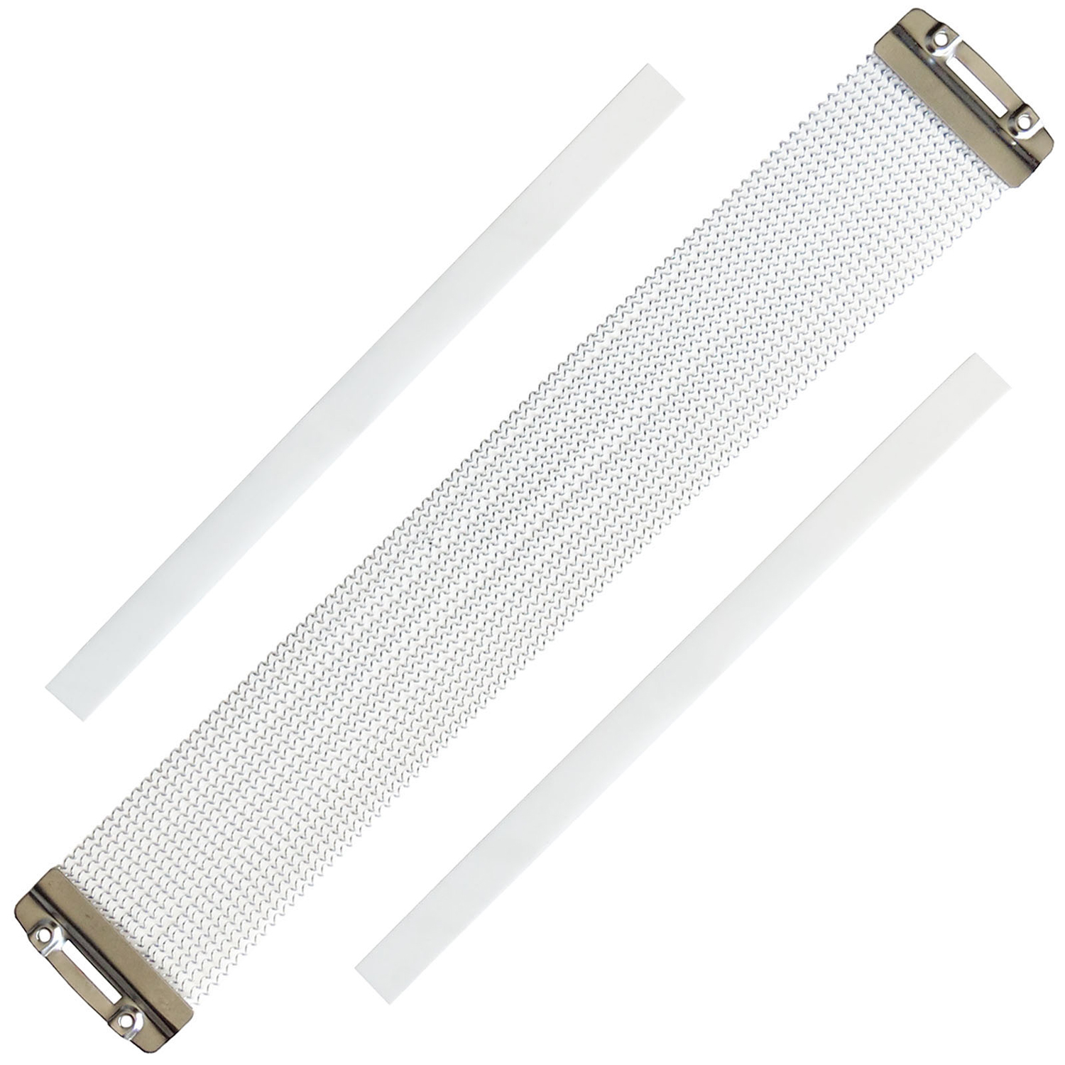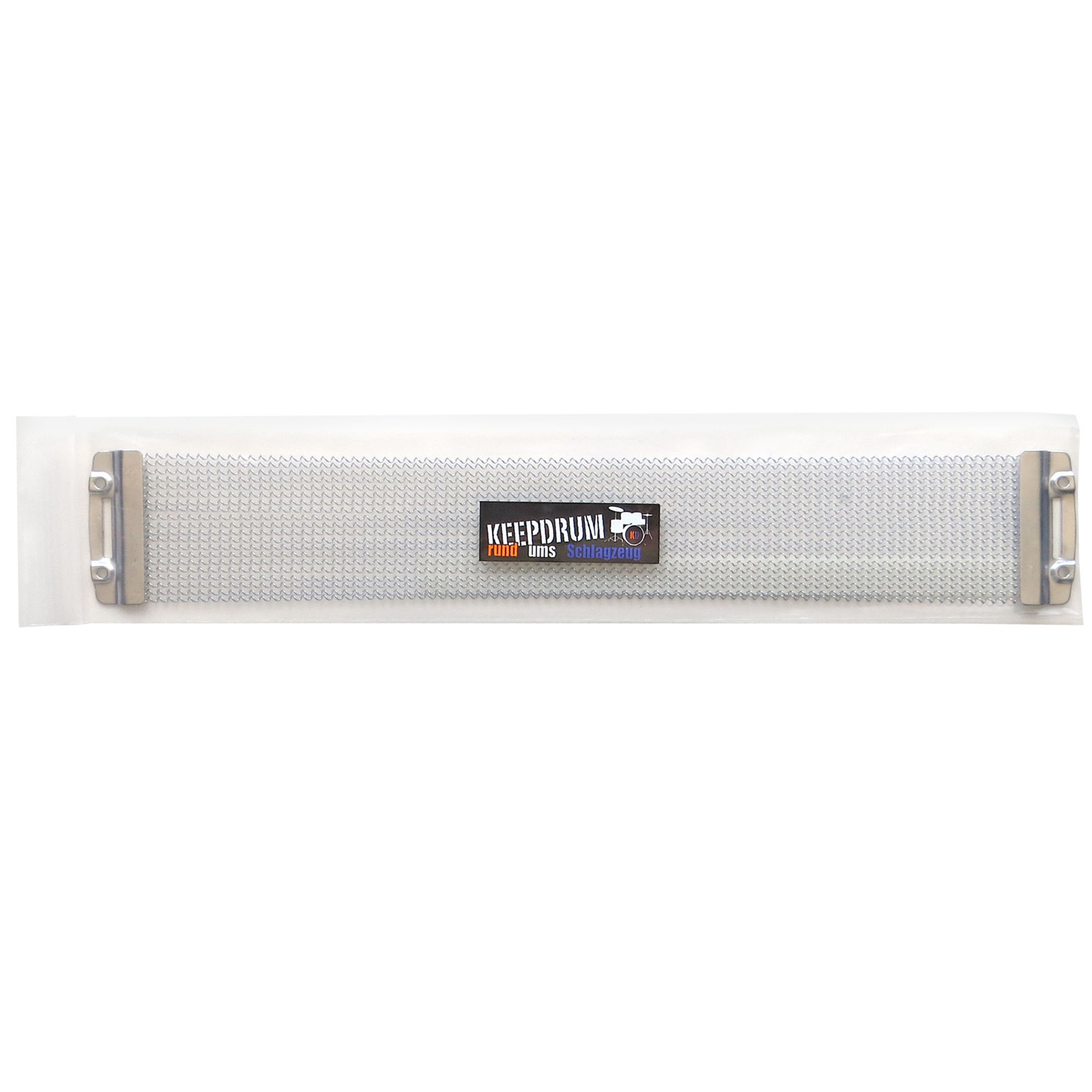 Der keepdrum Snareteppich SNW20 verfügt über 20 Stahl-Spiralen mittlerer Stärke und eignet sich für 14" Snaredrums. Der Snare-Teppich bietet eine schnelle Ansprache und satten Punch. Die Spiralen sind deckend an die Endplättchen verlötet, die ebenso Löcher zur Befestigung mit Schnüren bieten. Zur Befestigung des Teppichs sind zwei robuste Kunststoff-Bänder mit einer Länge von je 215mm im Lieferumfang enthalten.