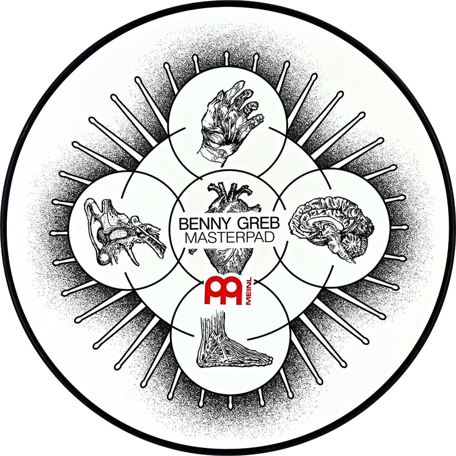 Das 12"-Pad ermöglicht das leise Üben auf einer Snare-Drum, wobei es auch auf einen Standard Snareständer montiert werden kann. Die Unterseite ist mit einem Schaumstoff bedeckt, wodurch das Verrutschen des Pad auf der Snare oder auf einem Tisch vermieden wird.