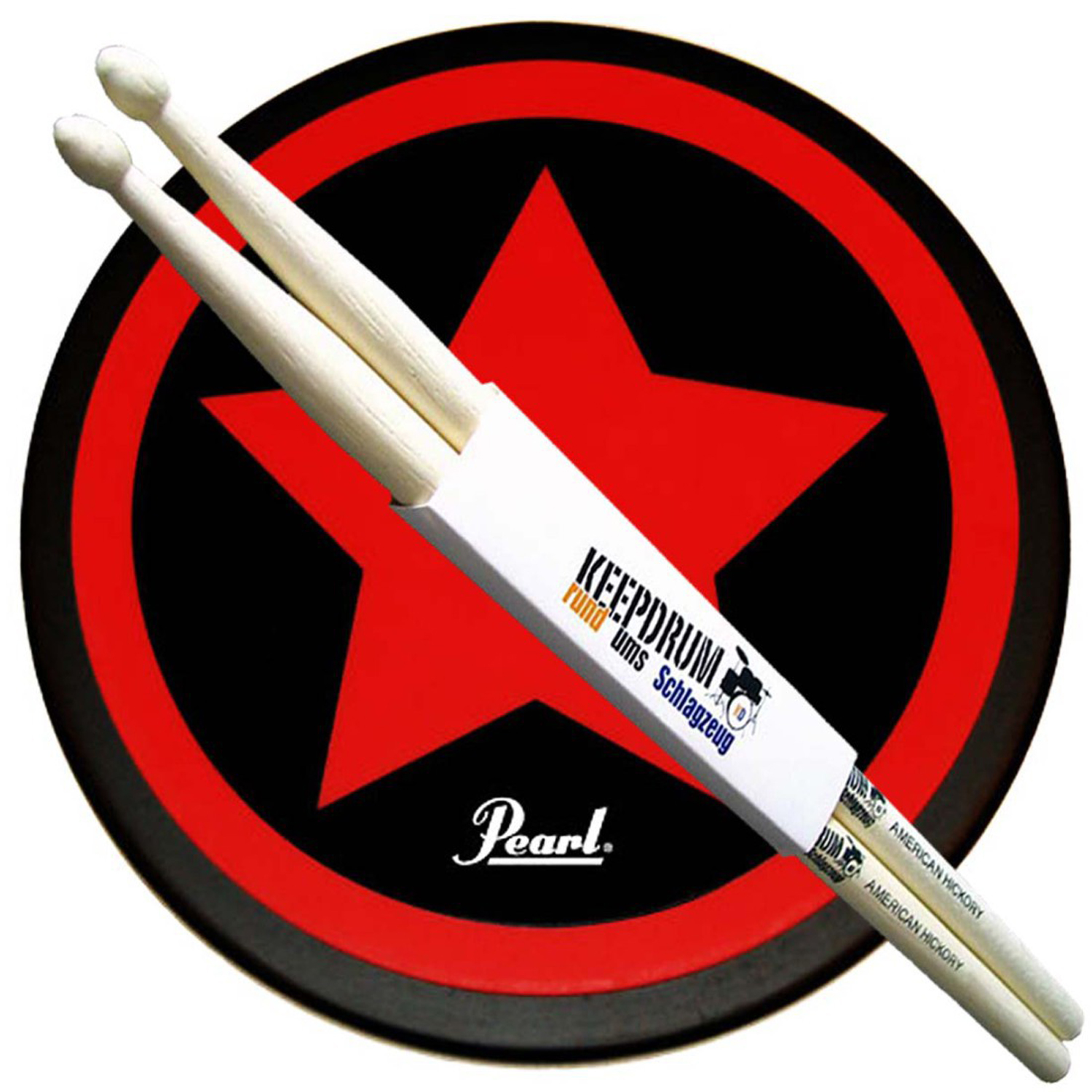 Pearl Practice Pad 8 Zoll Star mit Pearl Logo und Drumsticks