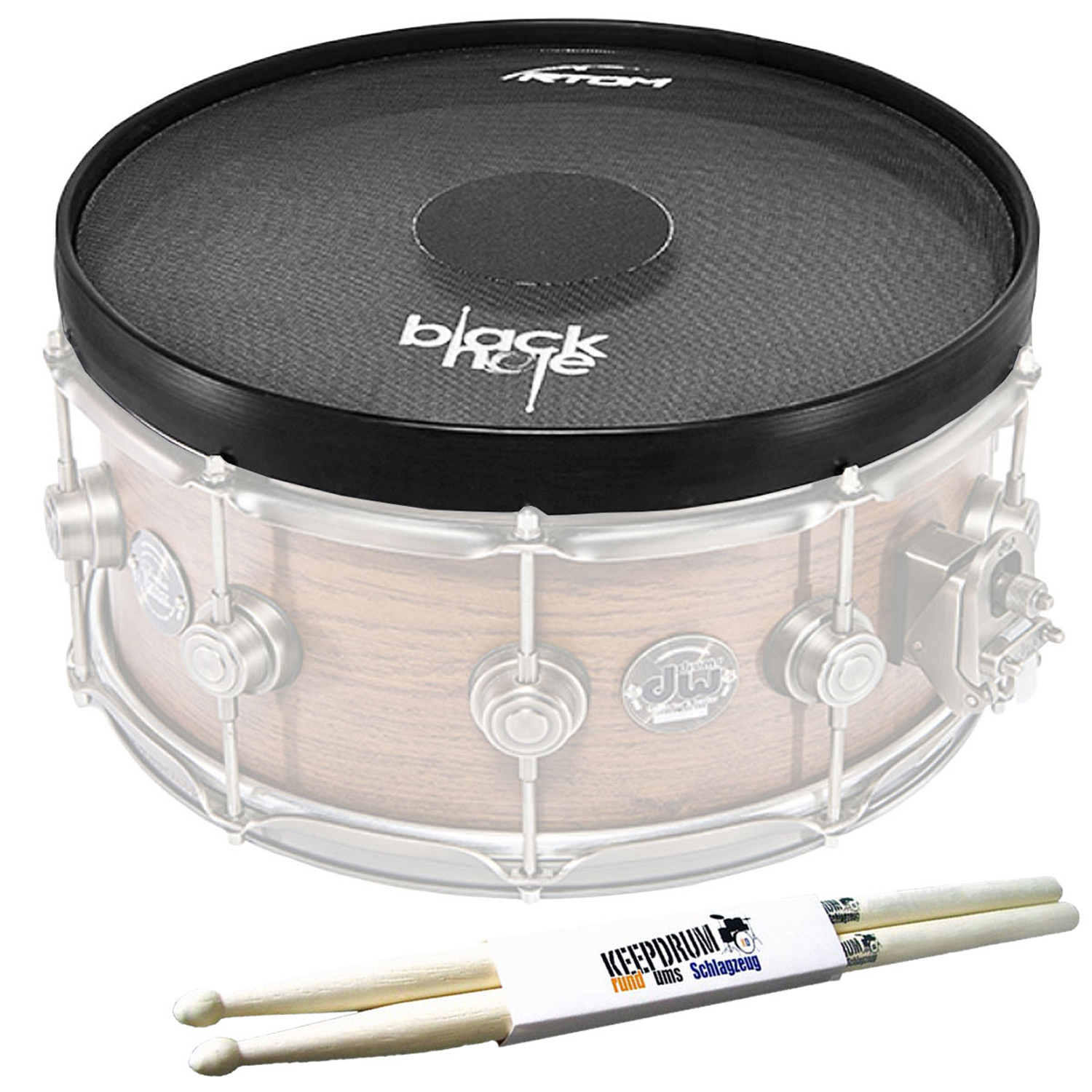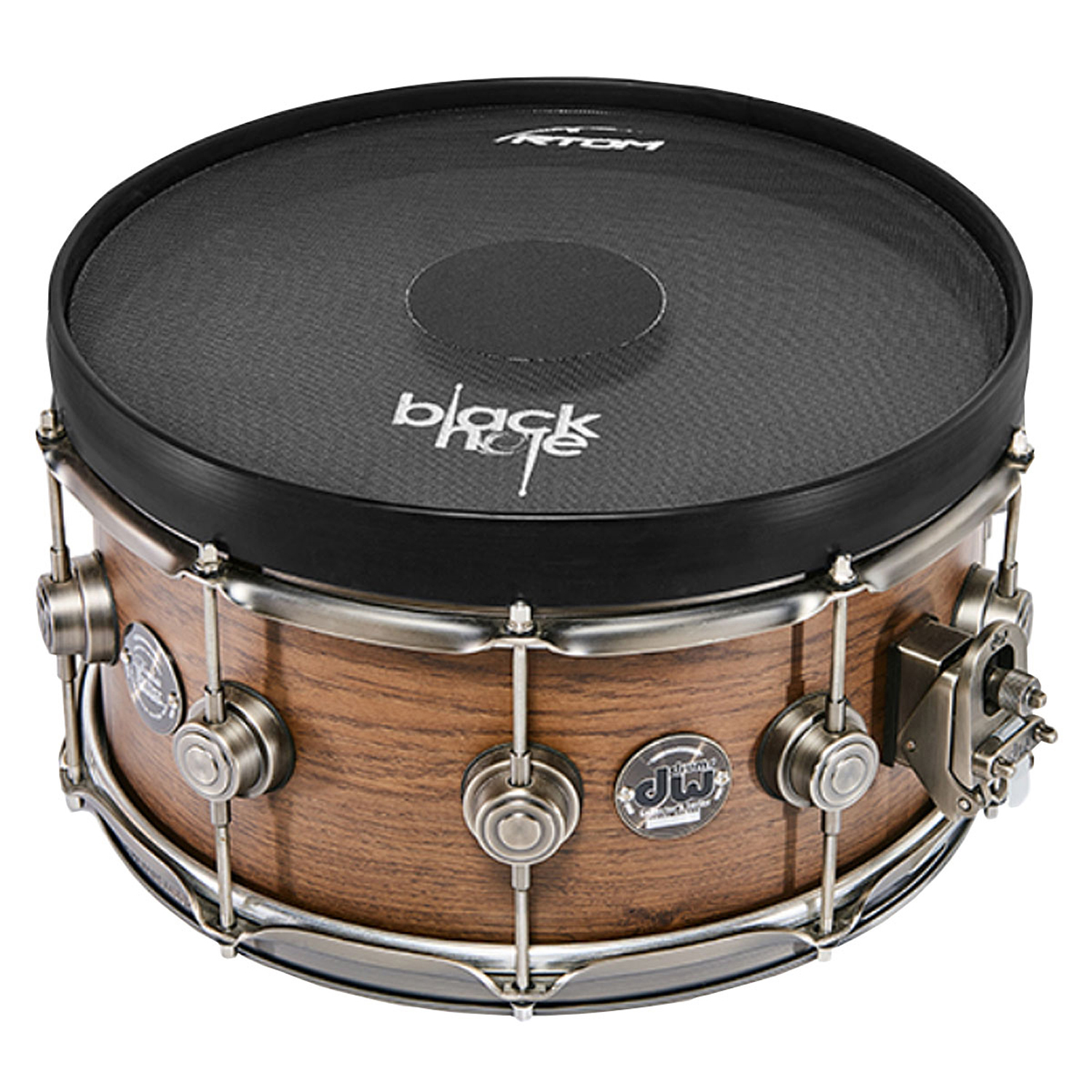 Das Black Hole Practice System von RTOM ermöglicht es die Lautstärke eines akustischen Schlagzeugs um 80% zu senken, wobei der Klang des Drumkits erhalten bleibt. Damit wird das Üben auf dem Akustikdrumset endlich auch zu Hause möglich.