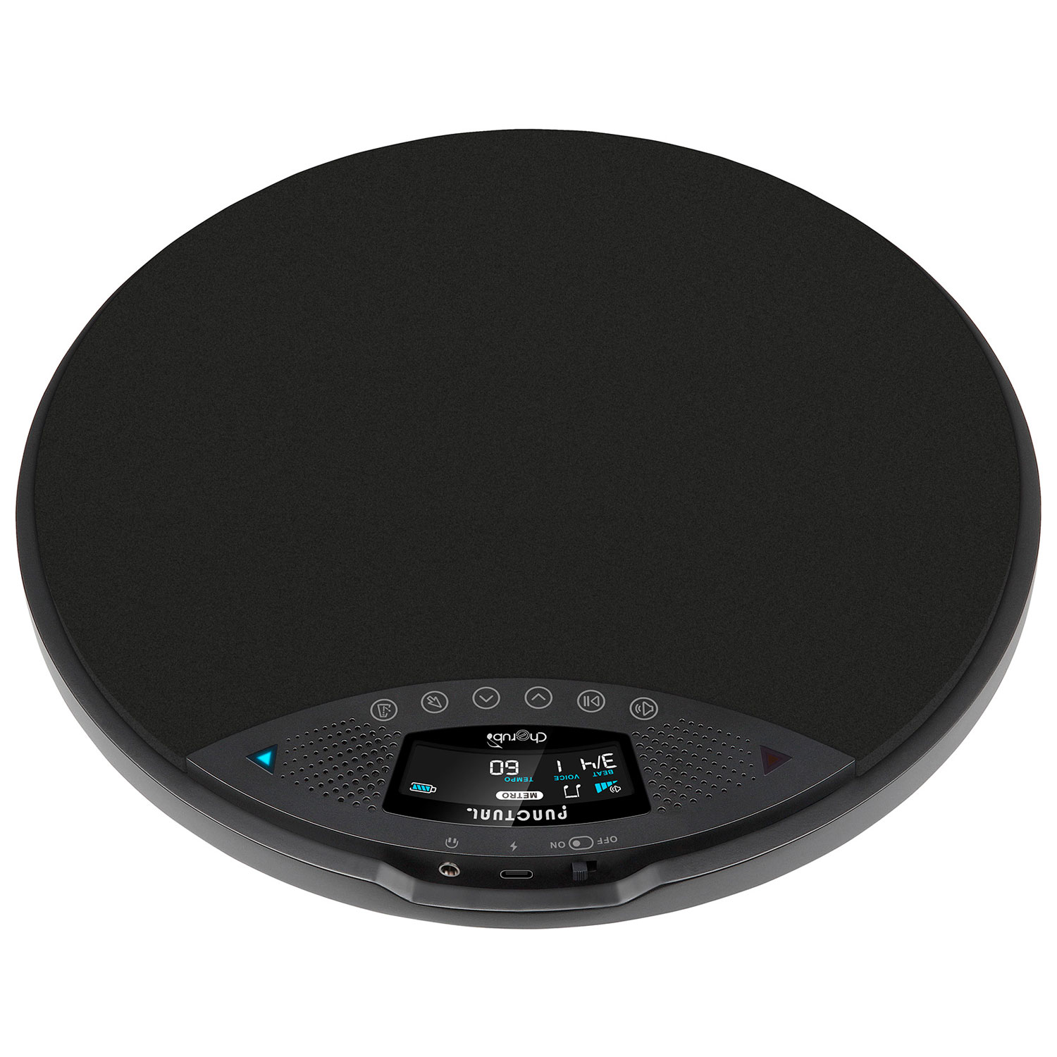 Das integrierte Metronom bietet verschiedene Taktarten wie 1/4, 2/4, 3/4, 4/4, 5/4, 3/8 und 6/8, einen Tempobereich von 30 bis 300 bpm sowie wählbare Zähl-Sounds, darunter elektronisch, mechanisch, Glocke und Becken. Zudem stehen Einstellungen für den Zählmodus mit 30, 60, 120 und 180 Sekunden zur Verfügung - hier werden deine Schläge über den angegebenen Zeitraum gezählt.