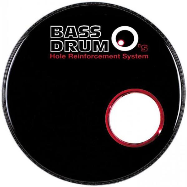 - Bass Drum Os add durability and pizazz to ported bass drum heads.