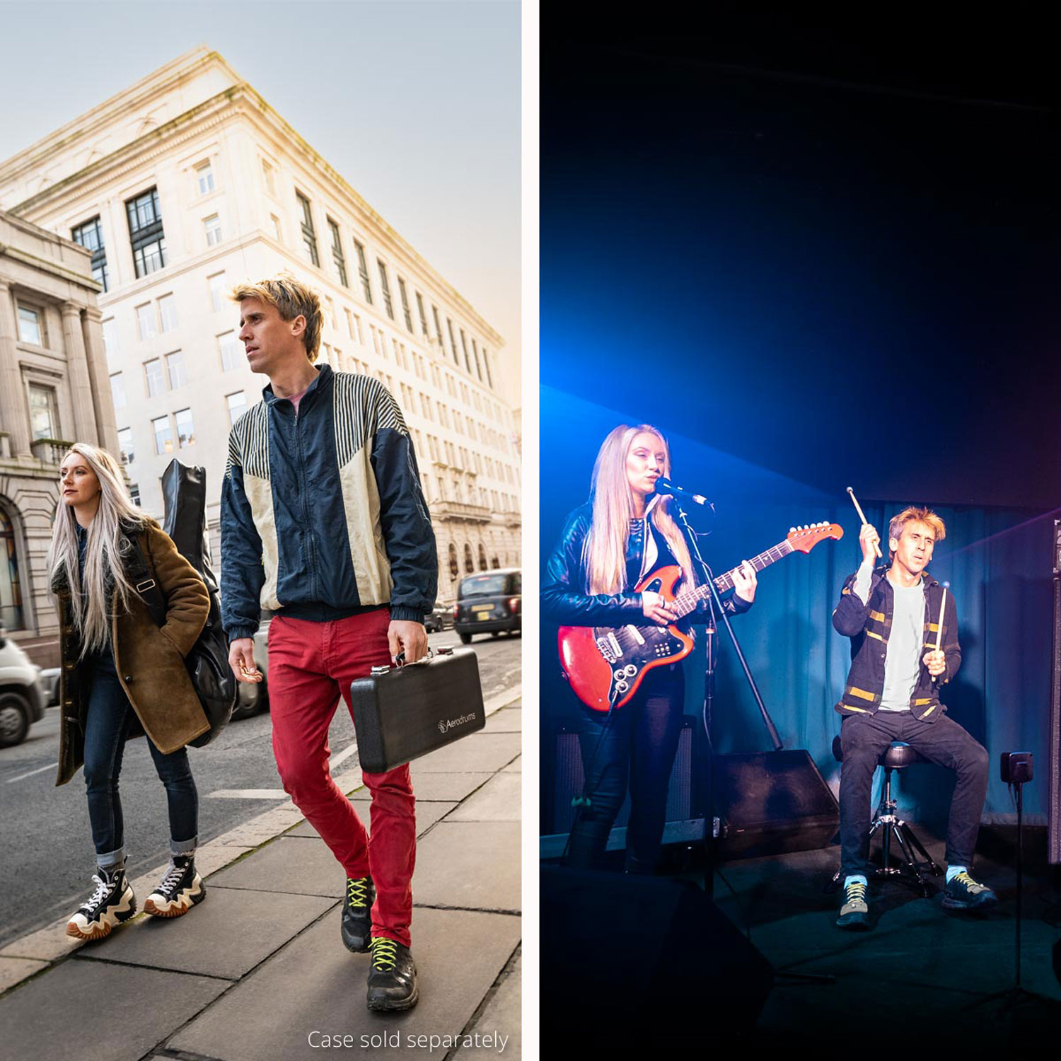 Dank seines leichten und kompakten Designs nimmst du mit Aerodrums 2 dein komplettes Schlagzeug einfach überallhin mit. Es passt problemlos in deine Tasche und begleitet dich - ob ins Wohnzimmer, ins Studio, zur Jam-Session oder auf die Bühne.