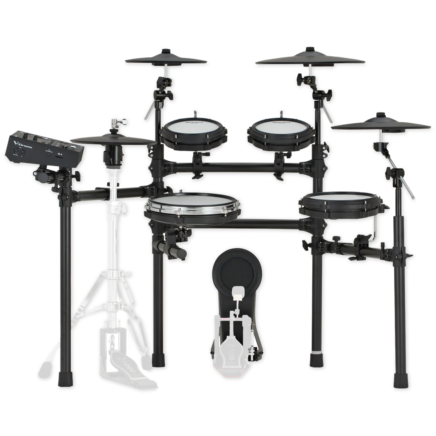Die neuen PD-12P Snare überzeugt mit drei Piezo-Sensoren und Positionserkennung, die weiterentwickelten PD-8H und PD-10H Tom-Pads mit Offset-Sensoren für natürliche Dynamikverläufe und reduzierte Hotspots. Das robuste KD-10 Kickpad bietet authentisches Akustik-Spielgefühl bei niedrigen Spielgeräuschen in Innenräumen, und die VH-10 Hi-Hat wird auf einem traditionellen Hi-Hat-Stativ (nicht im Lieferumfang enthalten) für eine natürliche Open/Close-Kontrolle montiert. Die CY-12C-T und CY-14R-T Crash-Pads überzeugen mit natürlicher Ansprache, Bow/Edge-Erkennung und Choke-Funktion, ebenso das CY-16R-T Ride-Pad. Das robuste MDS-Standard 3 Stativ ermöglicht eine noch flexiblere Tom- und Becken-Montage. Abgerundet wird das Paket durch ein selbstklebendes KDP-5 Kickpad-Patch, wobei Ersatz-Patches separat erhältlich sind.