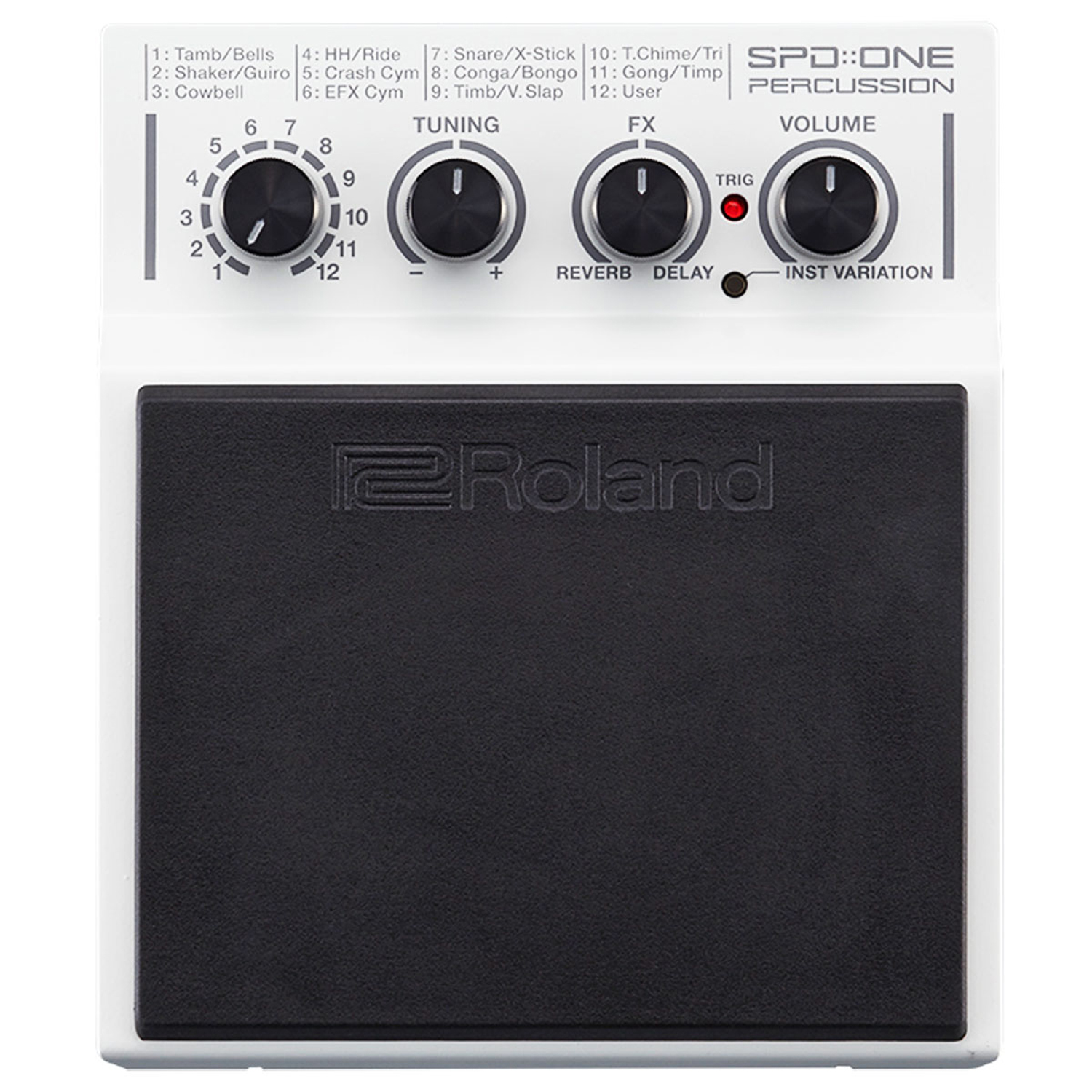 Das SPD One Percussion ist ein digitales Percussion-Pad mit 22 realistischen Percussion-Sounds wie Snares, Hihats, Becken, Shaker und Tamburin. Auch der Import eines eigenen User Sounds ist möglich.