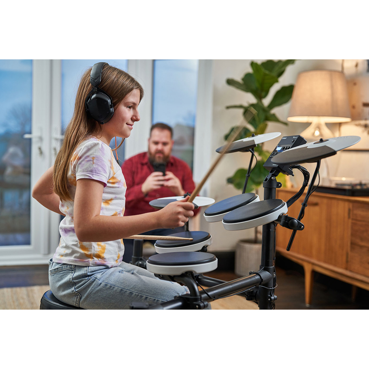 Das Roland TD-02K ist ein hochwertiges elektronisches Drumkit, das sich besonders für Einsteiger eignet. Dabei bietet das TD-02K alles was das Herz begehrt, von den erstklassigen Sounds und den reaktionsschnellen Pads bis hin zu den integrierten Übungswerkzeugen, der robusten Hardware und den praktischen Funktionen zur Geräuschreduzierung beim Spielen zu Hause.