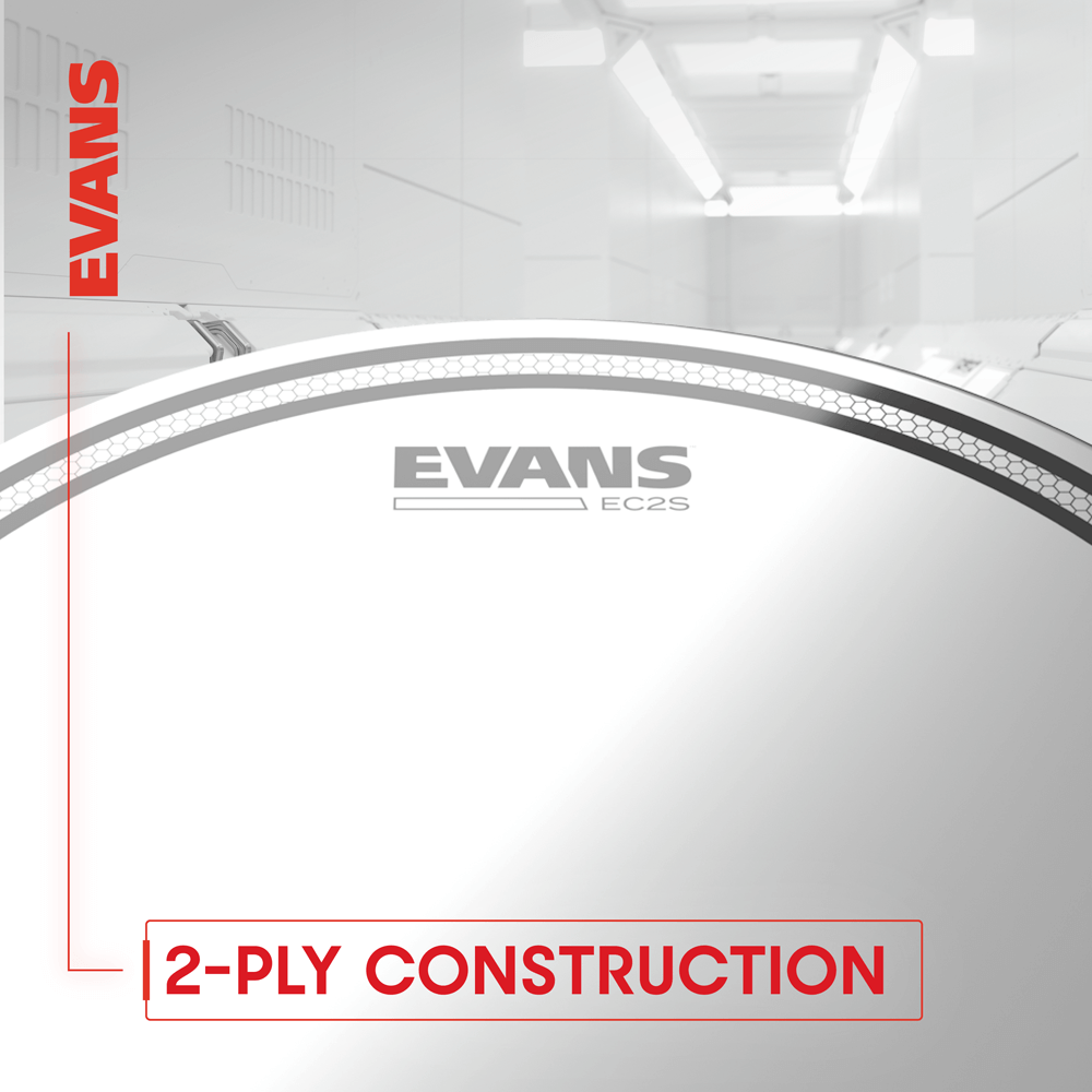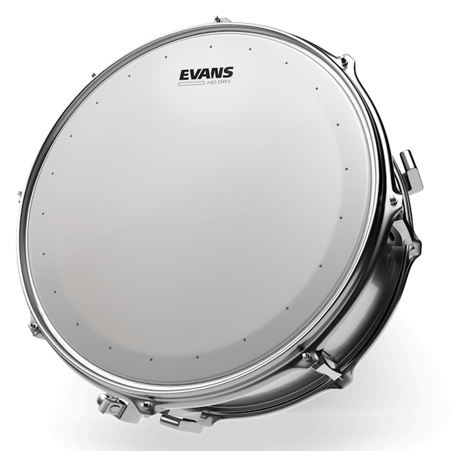 Die Genera HD Dry Snare Heads von Evans sind zweischichtig. Eine äußere Lage von 5 mil Schicht und eine innere Lage von 7,5 mil in Verbindung mit einem 2 mil Obertonkontrollring auf der Unterseite, der mit dem Fell schwingt, um übermäßige Obertöne zu eliminieren und Sustain zu kontrollieren. Präzise gebohrte Luftlöcher entlang des Perimeters des Schlagzeugfells reduzieren Obertöne und Sustain.