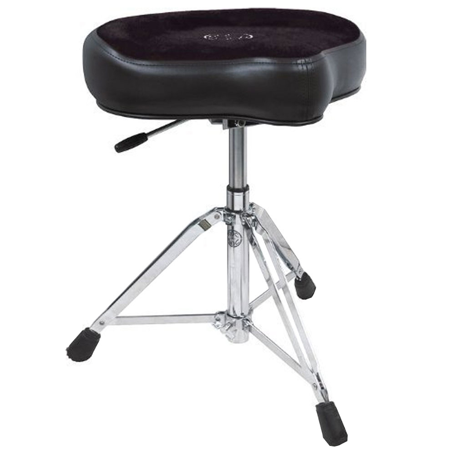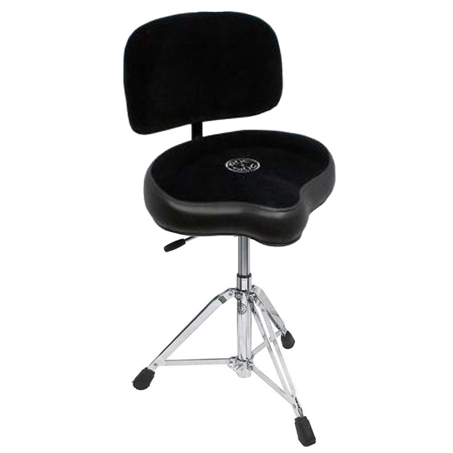 Die amerikanische Firma Roc-n-Soc stellt hochwertige Drum-Hocker her, die vor allem durch ihren hohen Sitzkomfort und die hochwertige Verarbeitung überzeugen.Der Sattelsitz ist nicht flach ausgeformt sonder ähnelt einem dicken Kissen mit Kontur. Durch die Cutaway Form an der Vorderseite wird Druck auf die Oberschenkel vermieden, wodurch die Durchblutung der Beine gefördert wird und man mehr Bewegungsfreiheit hat. Der Überzug des Sitzes ermöglicht es dem Körper zu atmen wodurch längere Sessions angenehm "ausgesessen" werden können.Durch die zusätzliche Rückenlehne wird der Rücken merklich geschont und der Komfort noch größer. Die Höhe der Lehne lässt sich je nach Wunsch anpassen.Der Sattel wird mit speziellem Gaslift Unterteil geliefert welches für dezent gefederten Sitzkomfort sorgt und stufenlos Höhenverstellbar ist. Das dreibeinige Unterteil ergänzt den Drumhocker zu einem sehr stabilen, roadtauglichen und standfesten Hocker mit überdurchschnittlicher Lebensdauer und hohem Spielkomfort.Details:
