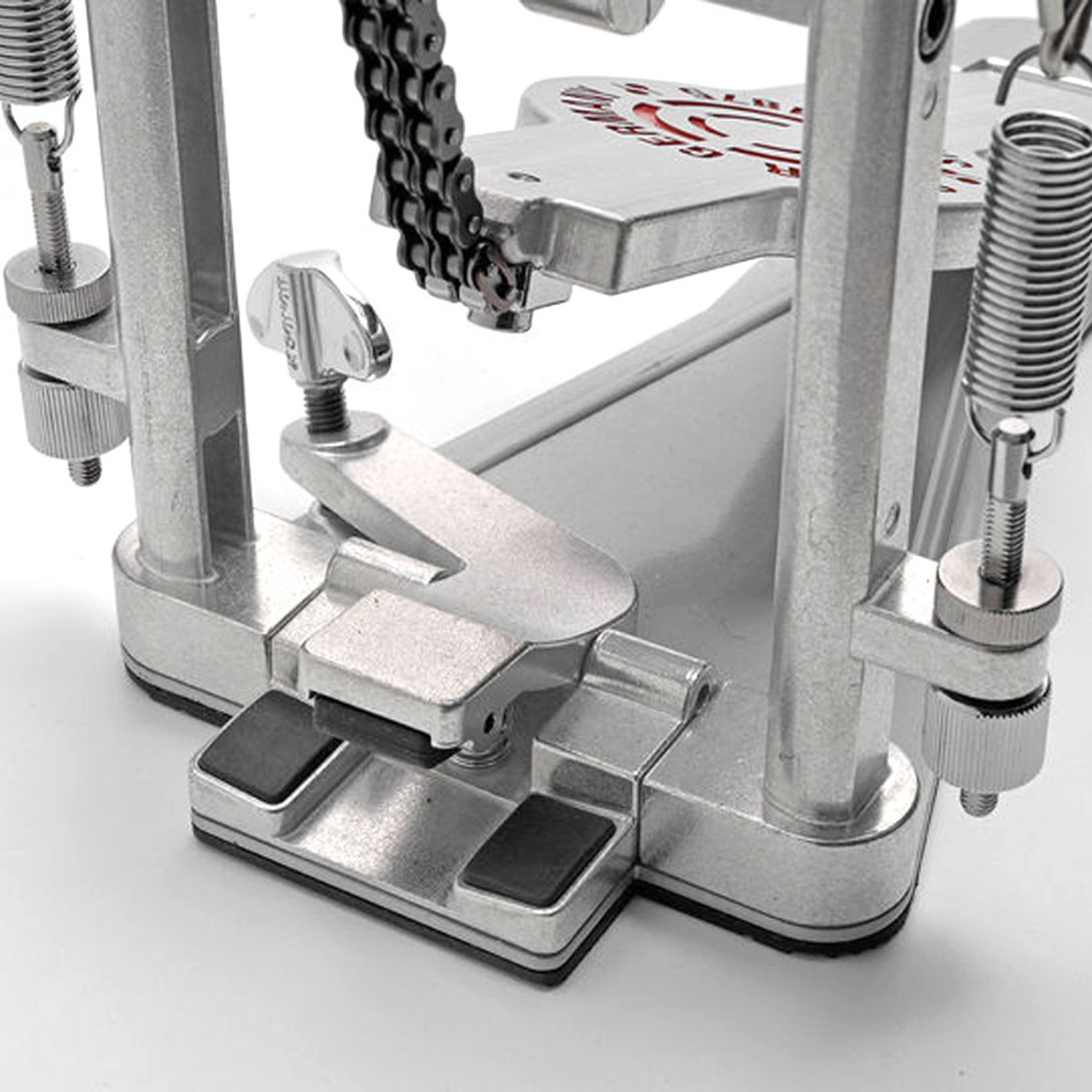 Die Sonor DP4000 Doppelfuß-Maschine mit Doppelketten-Antrieb kommt mit dem neuen Footboard Design im Triple-P Stil (Perfect Pressure Point) und verspricht Leichtgängigkeit, Spielcomfort und kraftvollen Sound. Bei diesem Modell der 4000er Serie befindet sich die Schlägelachse näher am Bassdrum-Fell als bei herkömmlichen Fußmaschinen, was für mehr Kraft und ein ausgewogenes Spielgefühl sorgt.Die rutschfeste Bodenplatte und die variabel einstellbare Bassdrum-Klammer mit Spannreif Schutz sorgen für sicheren Halt an der gewünschten Position. Auch bei diesem Bassdrum-Pedal verwendet Sonor die Fersenplatte mit Kugellager.Der Winkel des 2-Wege Beaters, der eine Filz und eine Kunststoff-Oberfläche bietet, ist frei einstellbar. Die neu optimierte, geräuschlose Federmechanik trägt zum angenehmen Spielgefühl der Sonor DP4000 bei. Details: