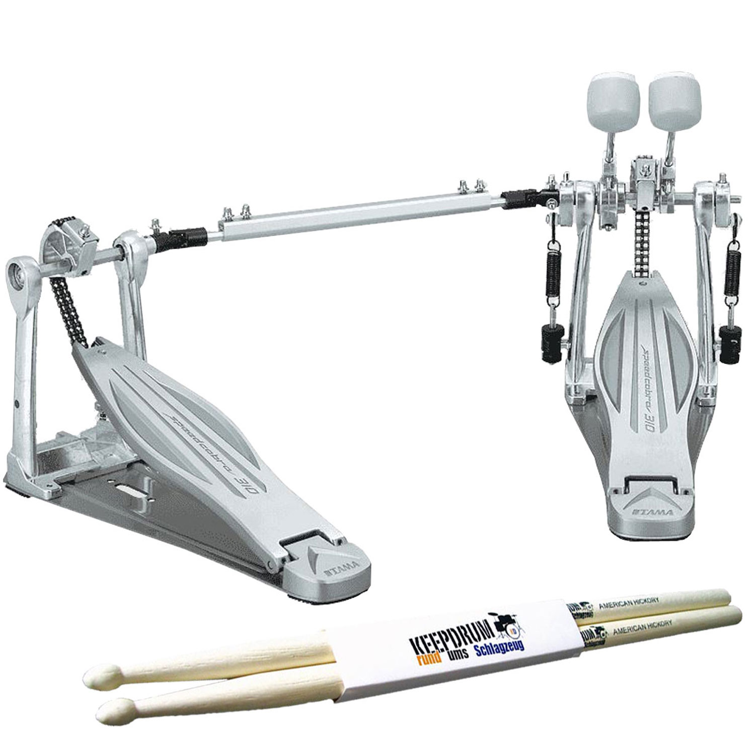 Tama Doppelpedal HP310LW Speed Cobra mit Drumsticks 1 Paar