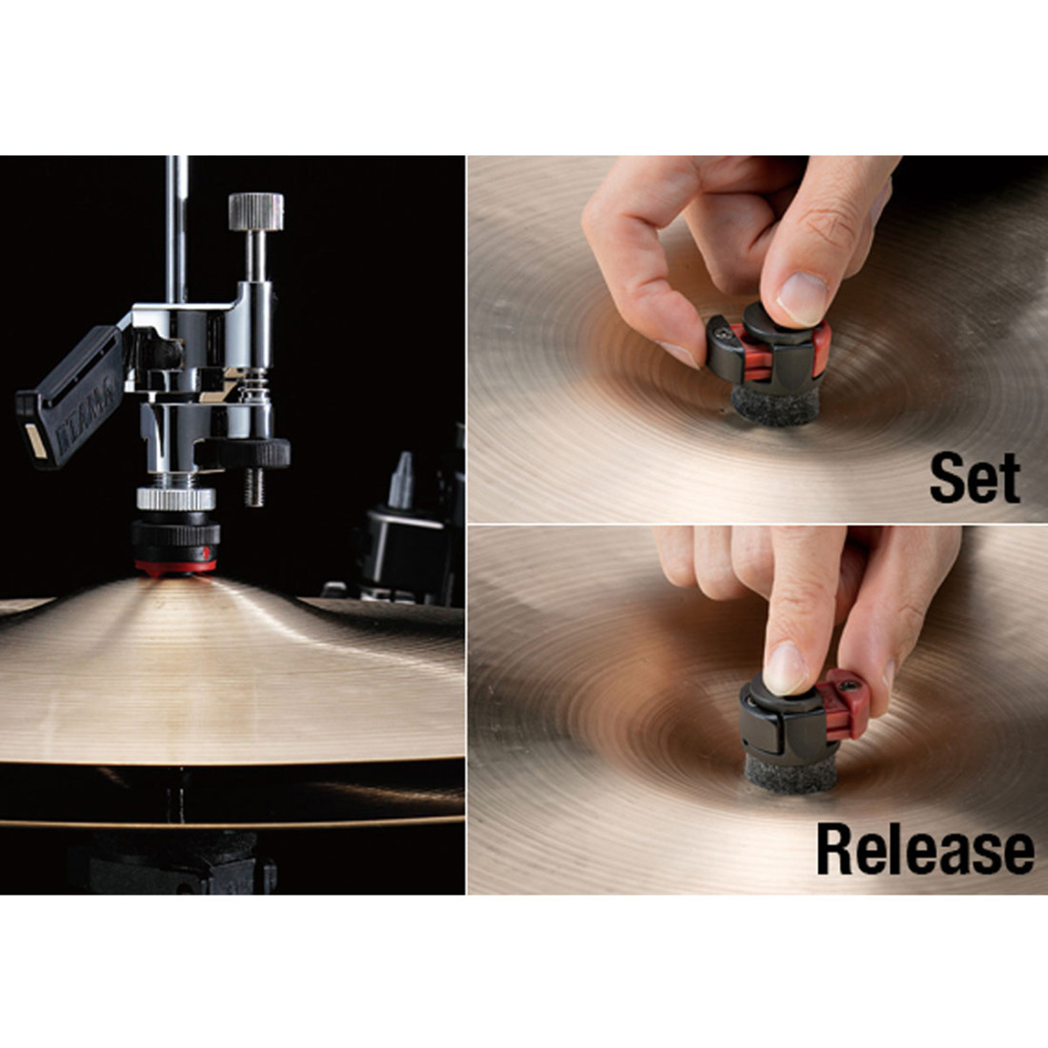 Bei herkömmlichen Drop-Clutches liegt das obere im gedroppten Zustand komplett auf das untere Becken auf - die Sizzle Drop-Clutch ermöglicht das Anpassen des Dropped-Sounds. Damit können beispielsweise Double-Bass-Parts nun auch mit leicht geöffneter Hi-Hat begleitet werden.