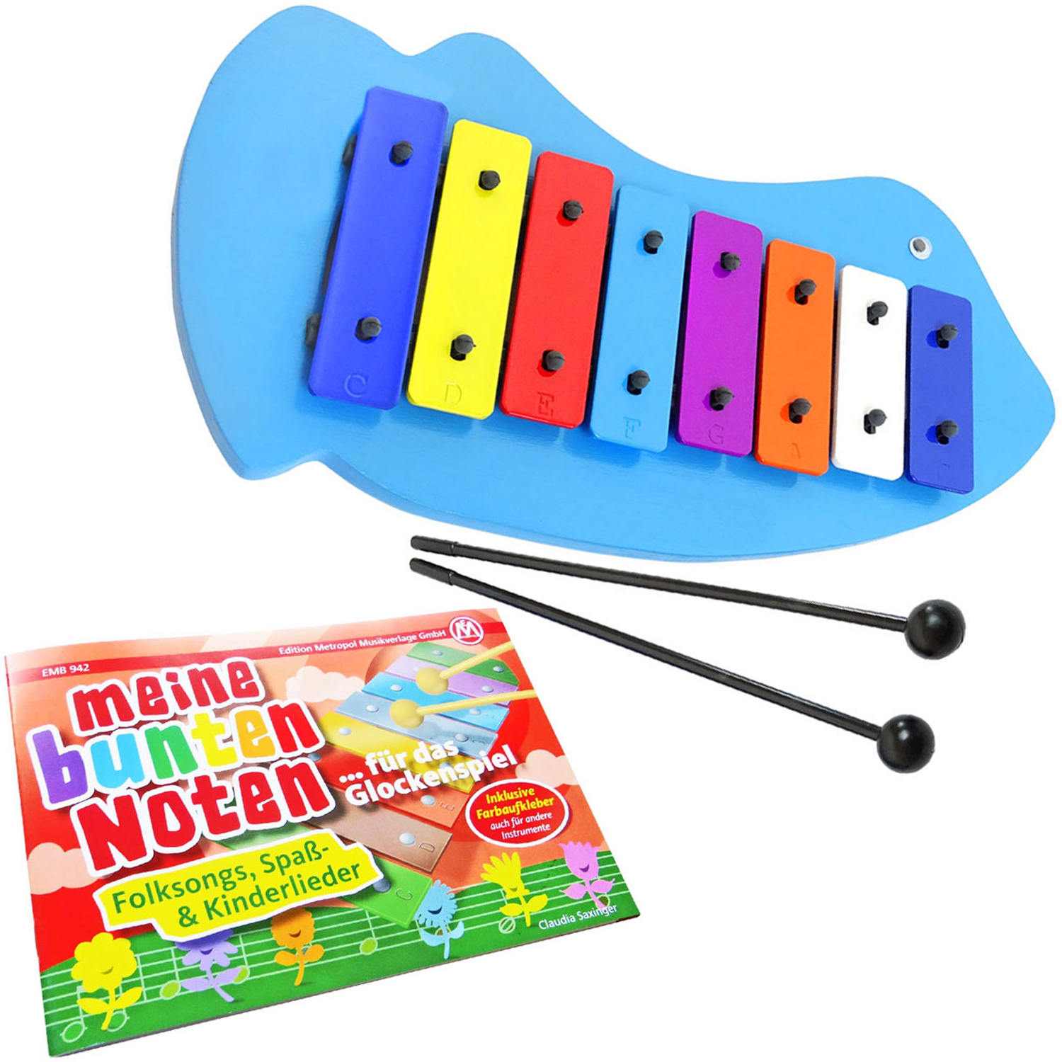 Im Lieferumfang sind Farbaufkleber enthalten die auf dem Glockenspiel angebracht werden - jeder Ton bekommt eine eigene Farbe zugeordnet. Die Noten im Heft sind in den passenden Farben notiert. Für Kinder ist es somit sehr einfach schnell Erfolgserlebnisse zu haben ohne dass Vorkenntnisse benötigt werden.