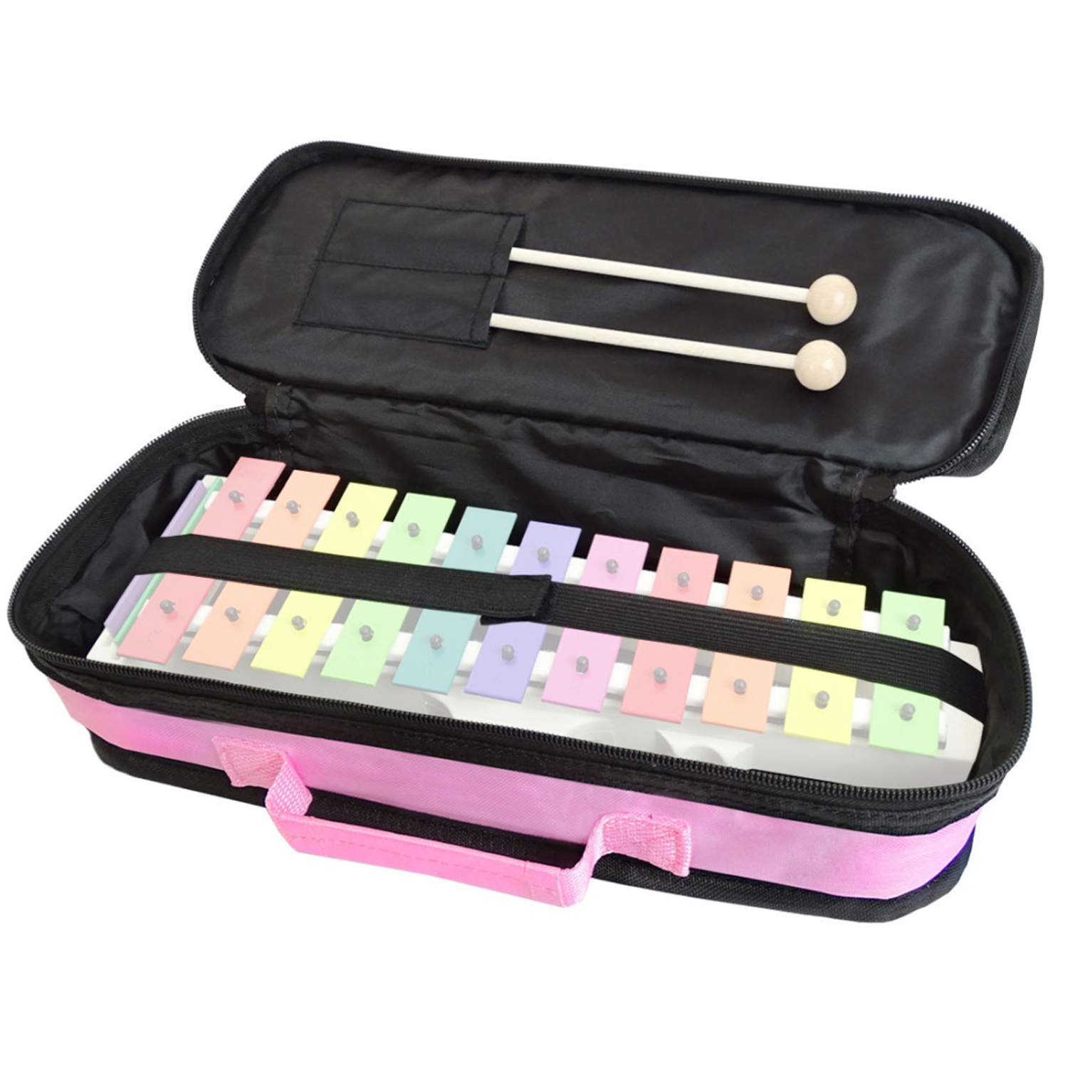 Zum Schutz Ihres Glockenspiels hat die Tasche im Inneren eine 5mm starke Polsterung. Mit den zwei Gummibändern mit Klettverschluss kann das Glockenspiel fixiert werden, wodurch es sicher verstaut ist und die Klangstäbe nicht herausfallen können.
