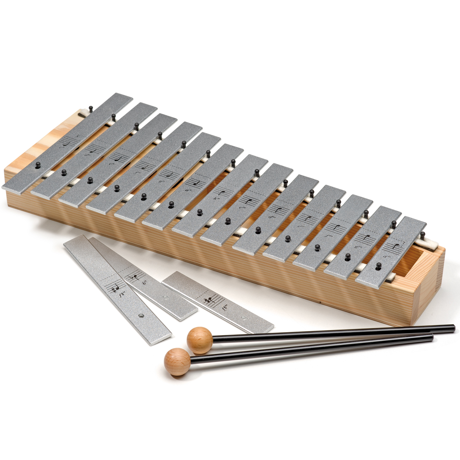 Das Sonor AGP Glockenspiel umfasst 16 Töne von c2 bis a3 in der C-DurTonleiter. Die Klangplatten sind aus Stahl gefertigt und liefern einensehr schönen, klaren Ton. Der zugehörige Resonanzkasten istausKiefernholz gefertigt. Ein Paar Schlägel ist im Lieferumfangenthalten.