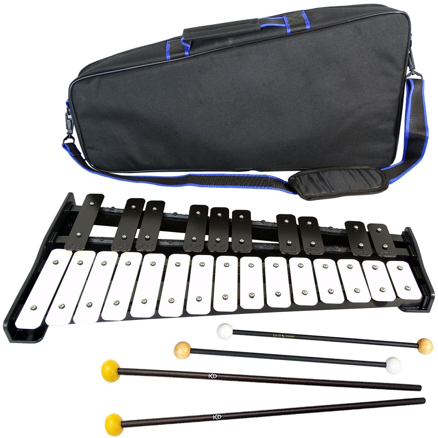Das GL 25 PN Glockenspiel von Sonor ist ein chromatisches Glockenspiel mit 25 Tönen von a2-a4 und umfasst somit 2 Oktaven. Das GL 25 PN bietet mit seinen Klangplatten aus Metall einen reinen, klaren Klang in der Grundstimmung C. Optisch orientiert sich das Glockenspiel mit den schwarzen und weissen Klangplatten an einer Klaviertastatur. Das Glockenspiel wird mit einem Paar Schlägel Typ SCH13 ausgeliefert. Diese Doppel-Schlägel verfügen an einer Seite über einen harten Holzkopf und am anderen Ende über einen weicheren Gummikopf. Im Lieferumfang enthalten ist eine Tasche mit Tragegurt, mit der das GL25 bequem transportiert werden kann.Durch die sehr guten Klangeigenschaften und den chromatischen Aufbau eignet sich dieses Glockenspiel ideal für den Musikunterricht. Details:
