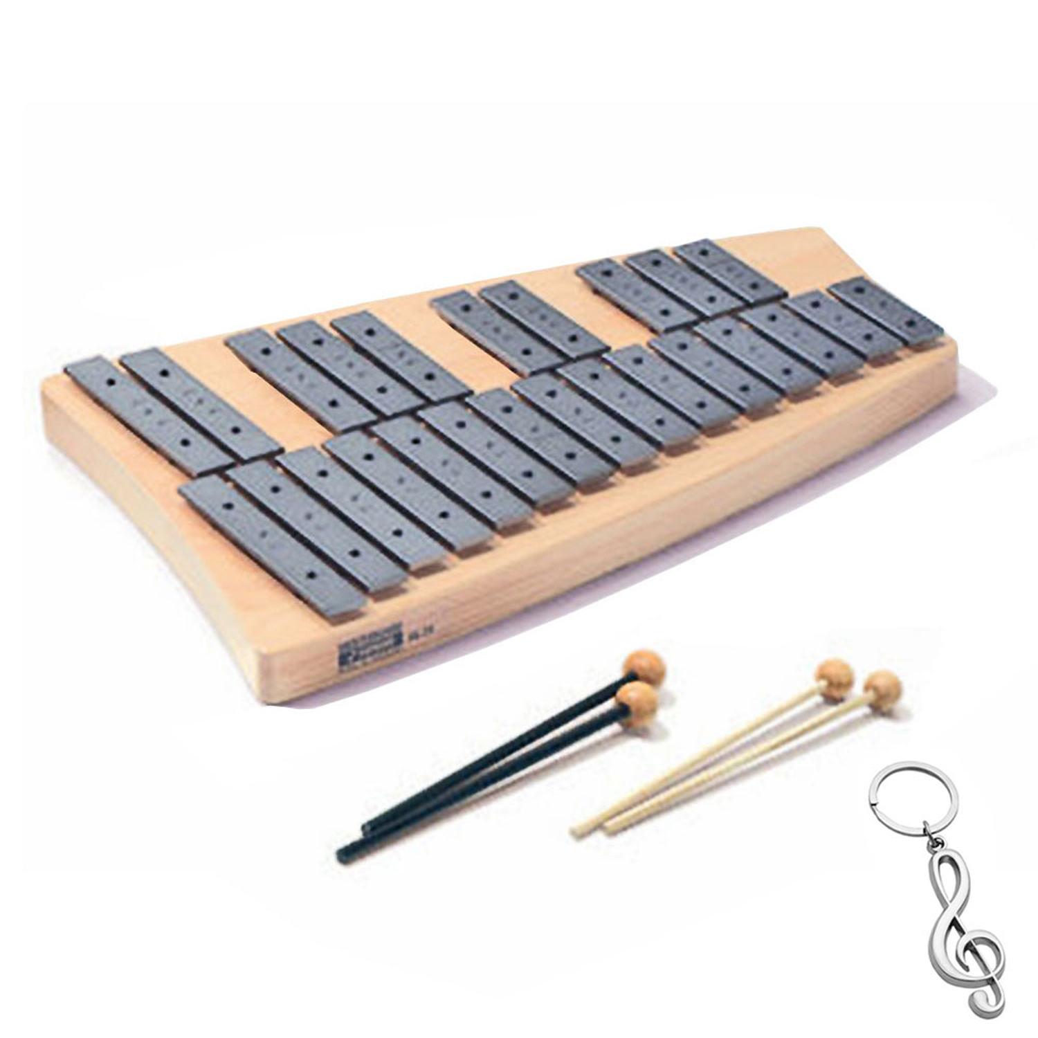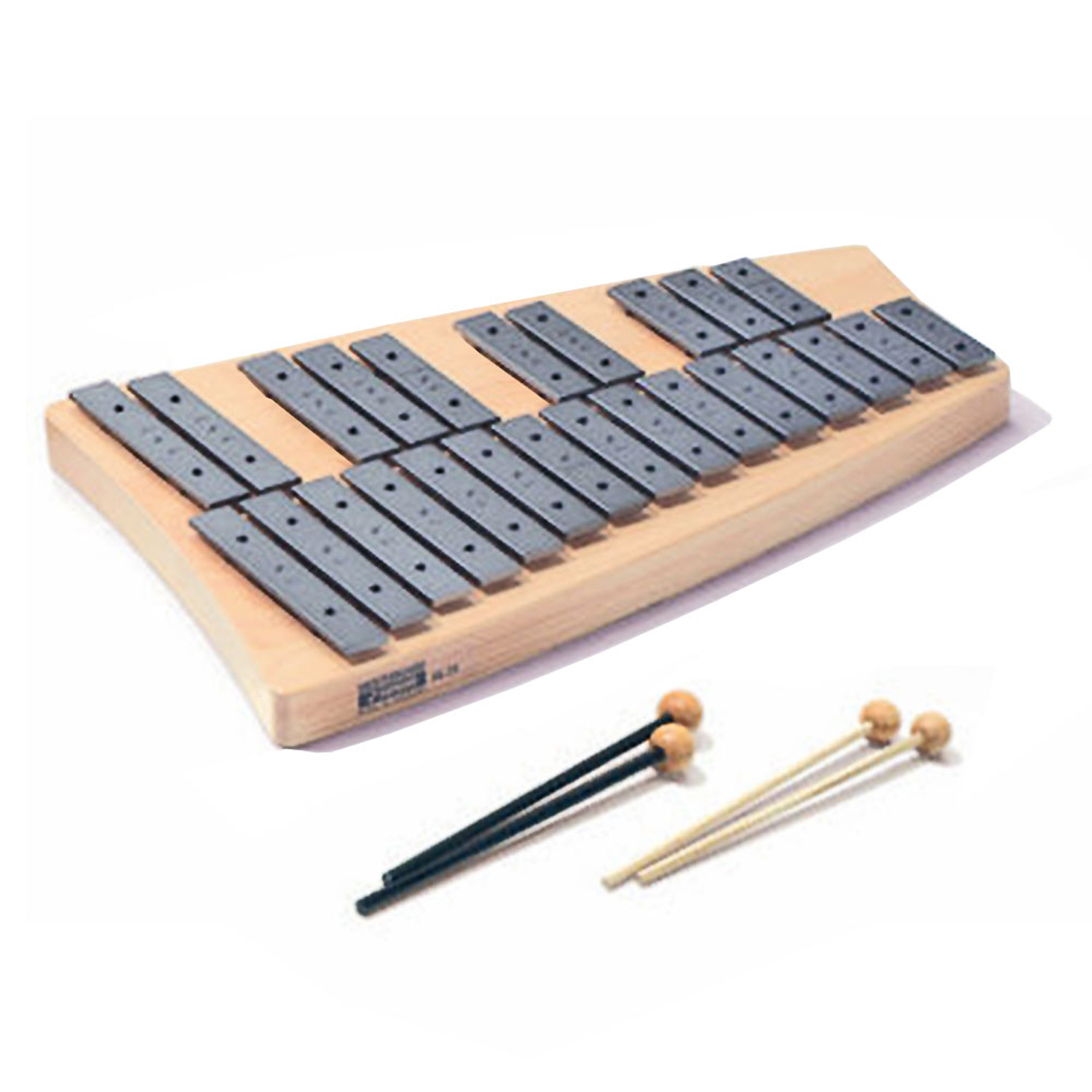 Das SG 25 Sopran Glockenspiel von Sonor ist ein chromatisches Glockenspiel mit 25 Tönen von c3-c5 und umfasst somit 2 Oktaven. Das SG 25 bietet mit seinen Klangplatten aus Metall einen reinen, klaren Klang. Die Klangplatten sind aus einer speziellen Metall-Legierung gefertigt und sind auf den Grundton gestimmt. Der zugehörige Resonanzkasten ist aus gesperrtem Buchenholz gefertigt.