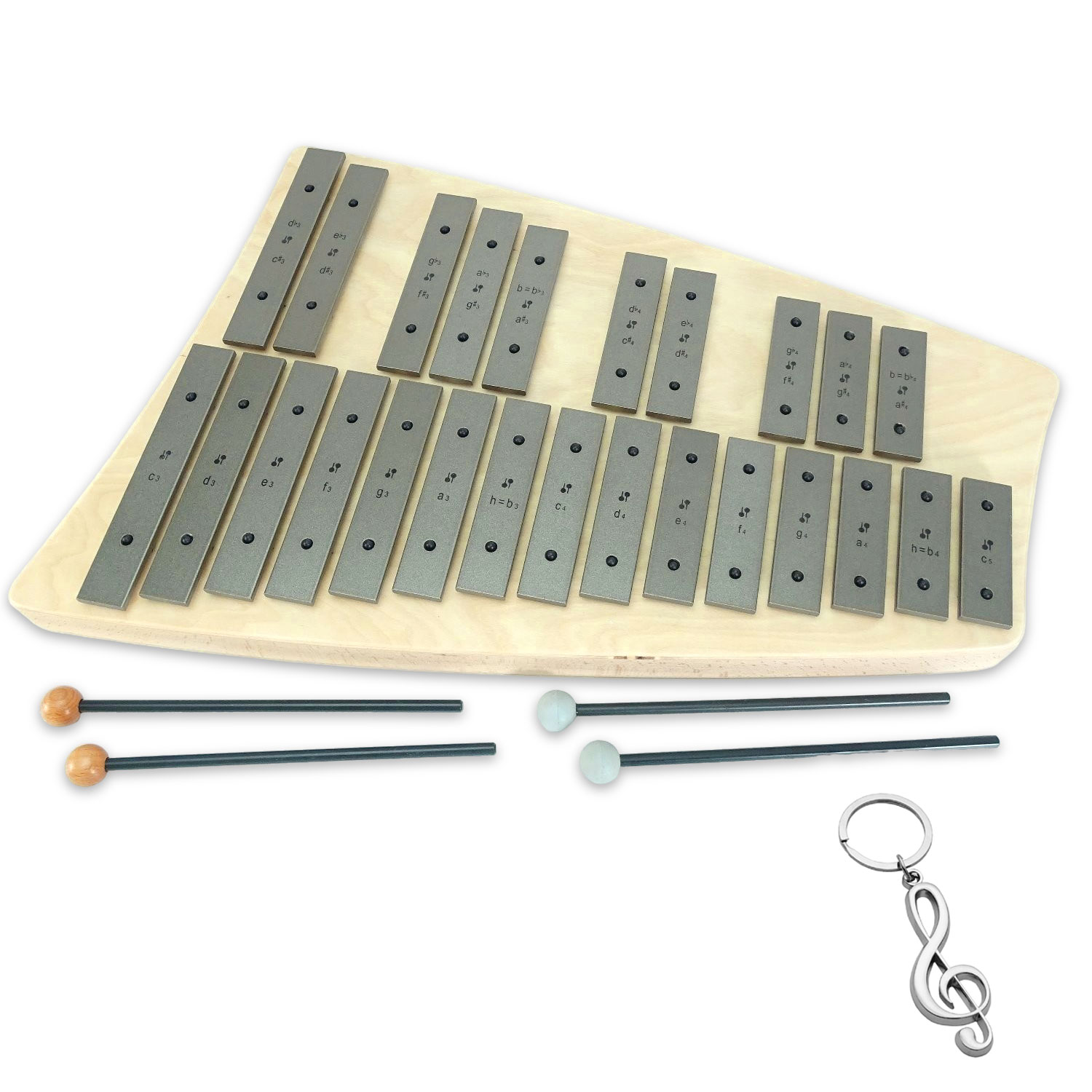Durch die sehr guten Klangeigenschaften und den chromatischen Aufbau eignet sich dieses Glockenspiel ideal für den Musikunterricht.