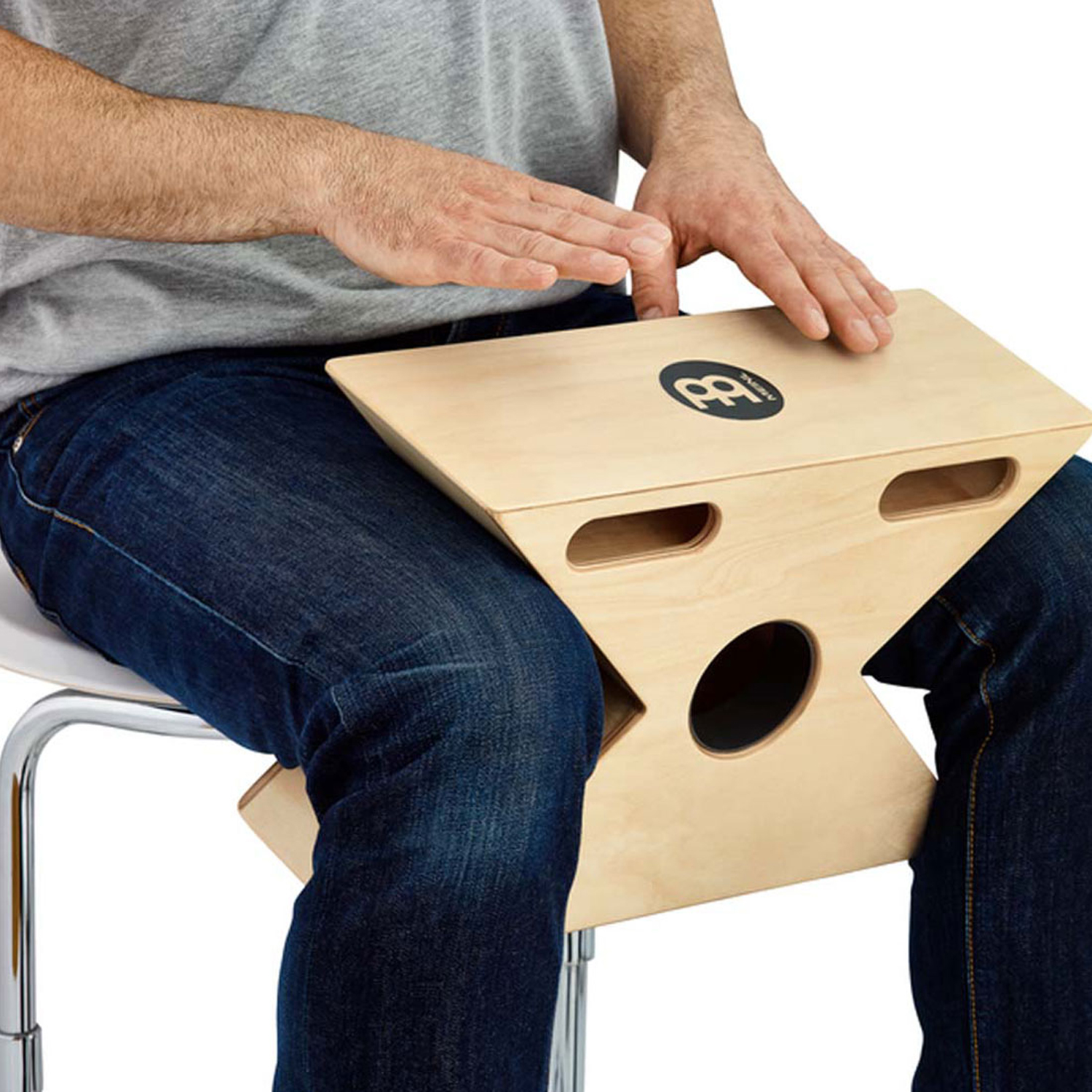 Die Meinl Hybrid Cajon ist komplett aus Birkenholz gefertigt mit den Maßen 36,8 x 25,4 x 14,6cm. Das Schallloch ist zum Publikum gerichtet und ermöglicht somit auch das Abnehmen des Cajonsoounds über ein Mikrofon.