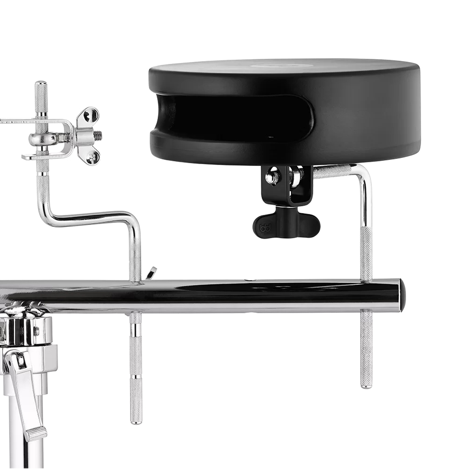 Durch das L-Rod, das im Lieferumfang enthalten ist kann die MCS-1 Snare einfach montiert und ausgerichtet werden. Am sinnvollsten ist die Befestigung der Snare an einem Hi-Hat-Ständer mit einer optional erhältlichen Klammer (keine Klammer im Lieferumfang enthalten).