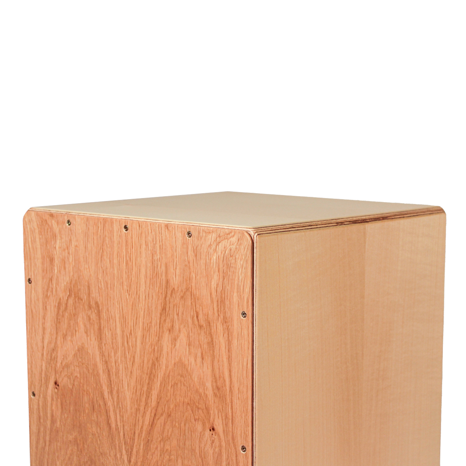 Die Cajon ist handgefertigt in Österreich und besteht aus einem Birkenholz-Korpus mit Ahorn-Furnier. Die Schlagfläche ist aus einer speziellen Sandwich Konstruktion aus Buche und Ast-Eiche gefertigt.