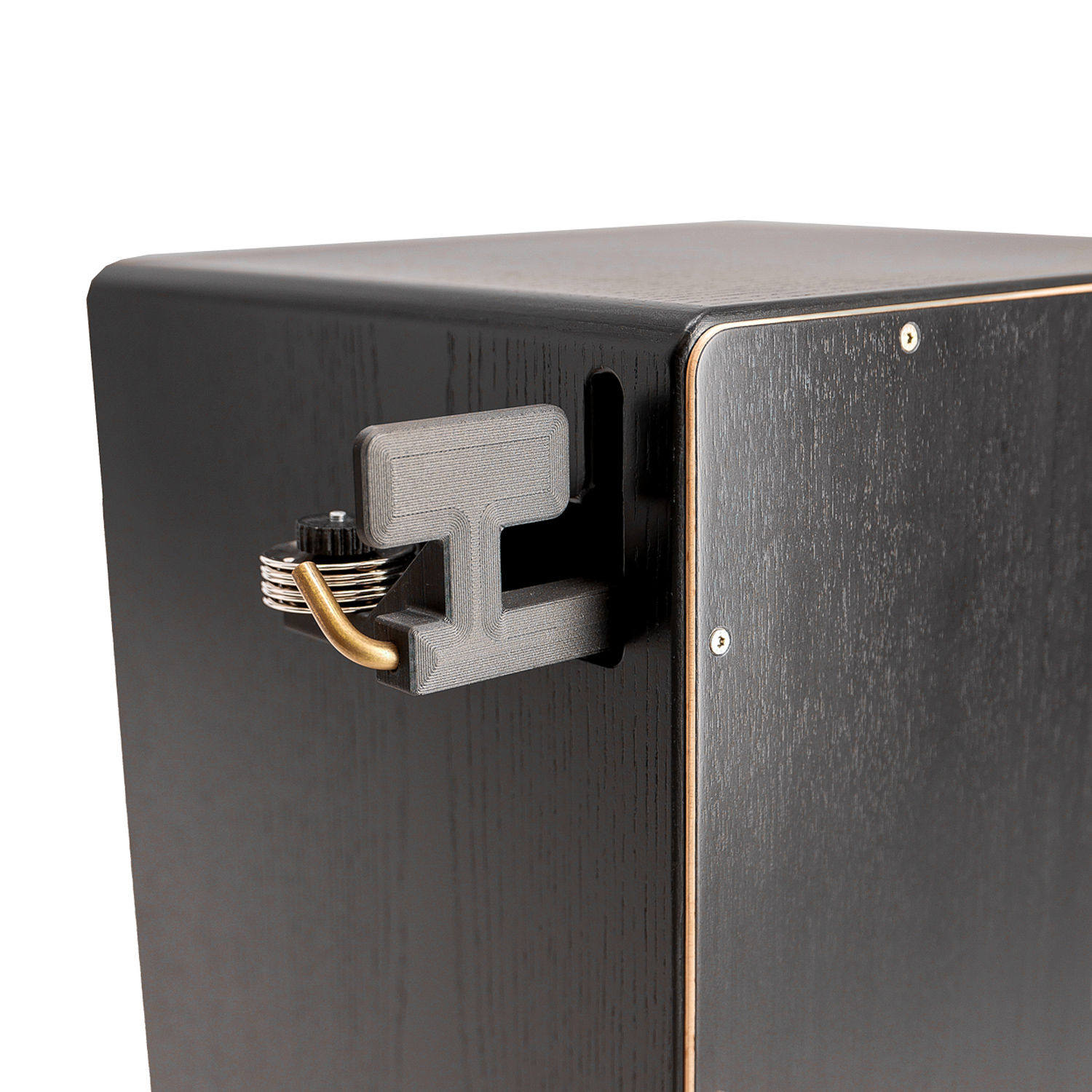 Der Snare Sound kann durch das Heel-Off System unten an der Cajon bequem über einen Hebel mit dem Fuß an- oder abgeschaltet werden. Ebenso kann ohne zusätzliches Werkzeug die Intensität des Snare-Sounds angepasst werden. Die Cajon hat eine klar definierte Snareansprache mit einem durchsetzungsstarken Bass-Sound.