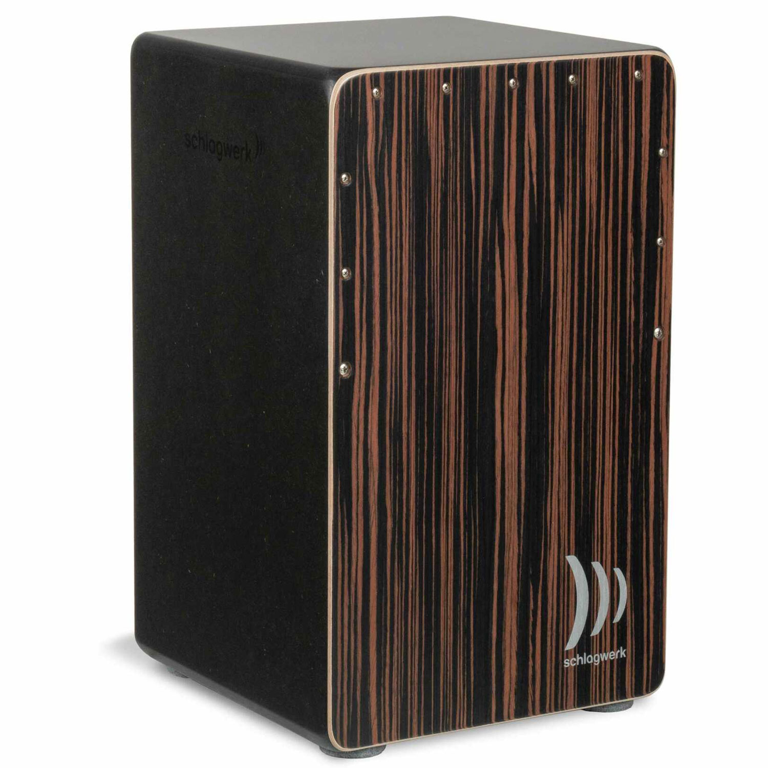 Kult-Garantie: Diese schwarzeSchönheit hat es in sich. Die anmutige Makassarfläche erzeugt einenüberzeugend kraftvollen Bass. Der Spezial-Korpus aus SPL (= sonicprojection lignum) stellt eine neue Dimension im Cajonbau dar.
