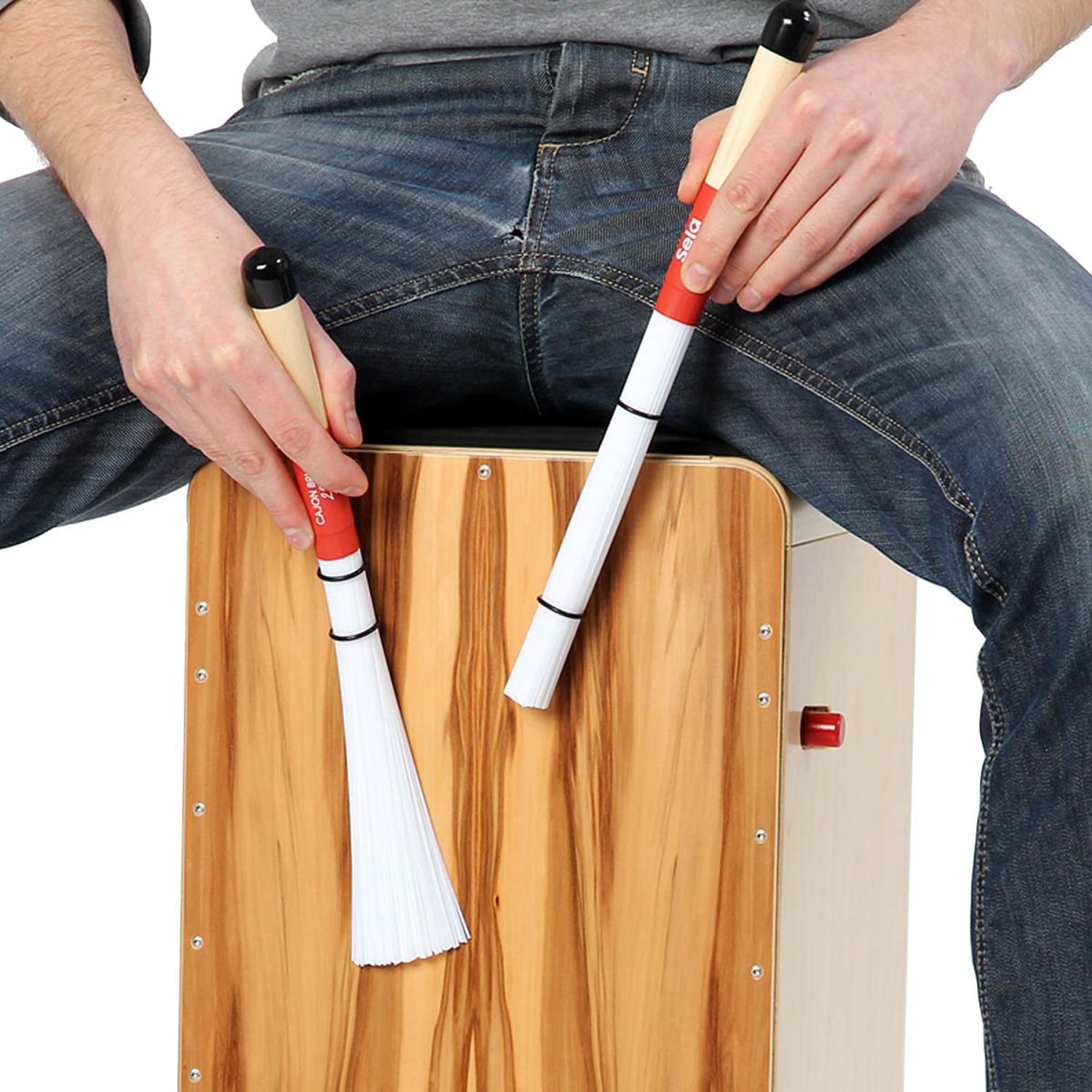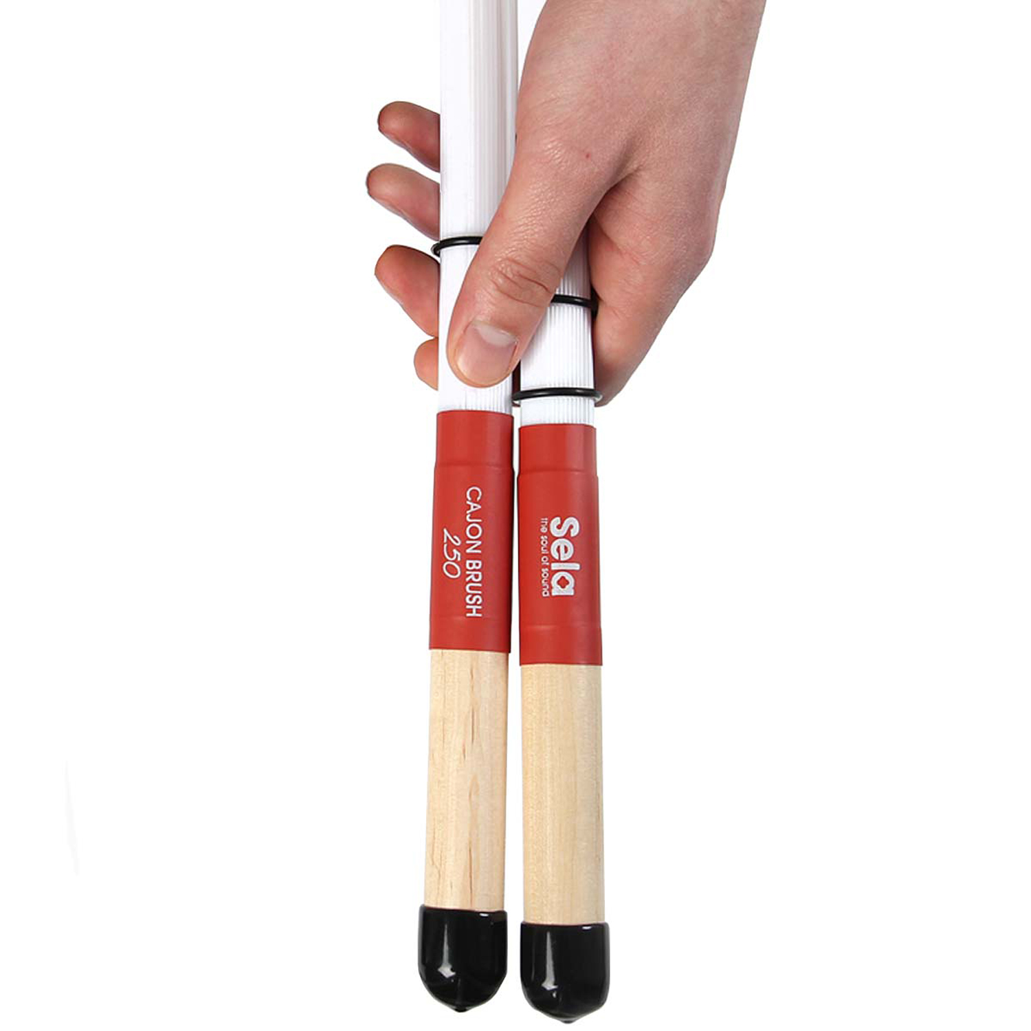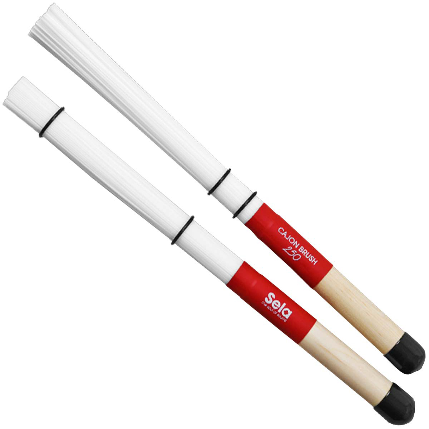 Mit dem Sela SE036 Cajon Brush holen Sie das volle Sound-Potential aus Ihrer Cajon. Die Sela Brushes wurden in Zusammenarbeit mit einer Reihe von Sela-Endorsern entwickelt, wodurch die Brushes extrem praxistauglich und vielfältig einsetzbar sind. Sela Brushes bieten ein höheres Gewicht als andere Cajon-Brushes und bieten daher mehr Punch und ausgeprägtere Bässe. Durch den hochwertigen Ahorn-Holz Griff und die Gummiummantelung liegt der Brush sehr angenehm und sicher in der Hand.Durch zwei verschiebbare Gummiringe sind sehr nuancierte Einstellungen möglich. Hier ist alles machbar vom akzentierten, bassbetonen Sound bis zum klassischen Besenspiel. Die speziellen Nylonfasern von denen der SE036 Brush 250 Stück besitzt, sind am Ende weich und werden nach oben hin zunehmend härter. Je nach Schlagwinkel verändert sich somit auch der Sound und bietet viele Möglichkeiten für Variationen. Die Endkappe am Griff der Brushes kann zusätzlich für spezielle Spieltechniken genutzt werden.Durch ihre musikalische Flexibilität eignen sich Sela Brushes auch für andere Percussion-Instrumente als Cajons wie zum Beispiel Frame Drums oder Tamburins.Details: - 1 Paar
