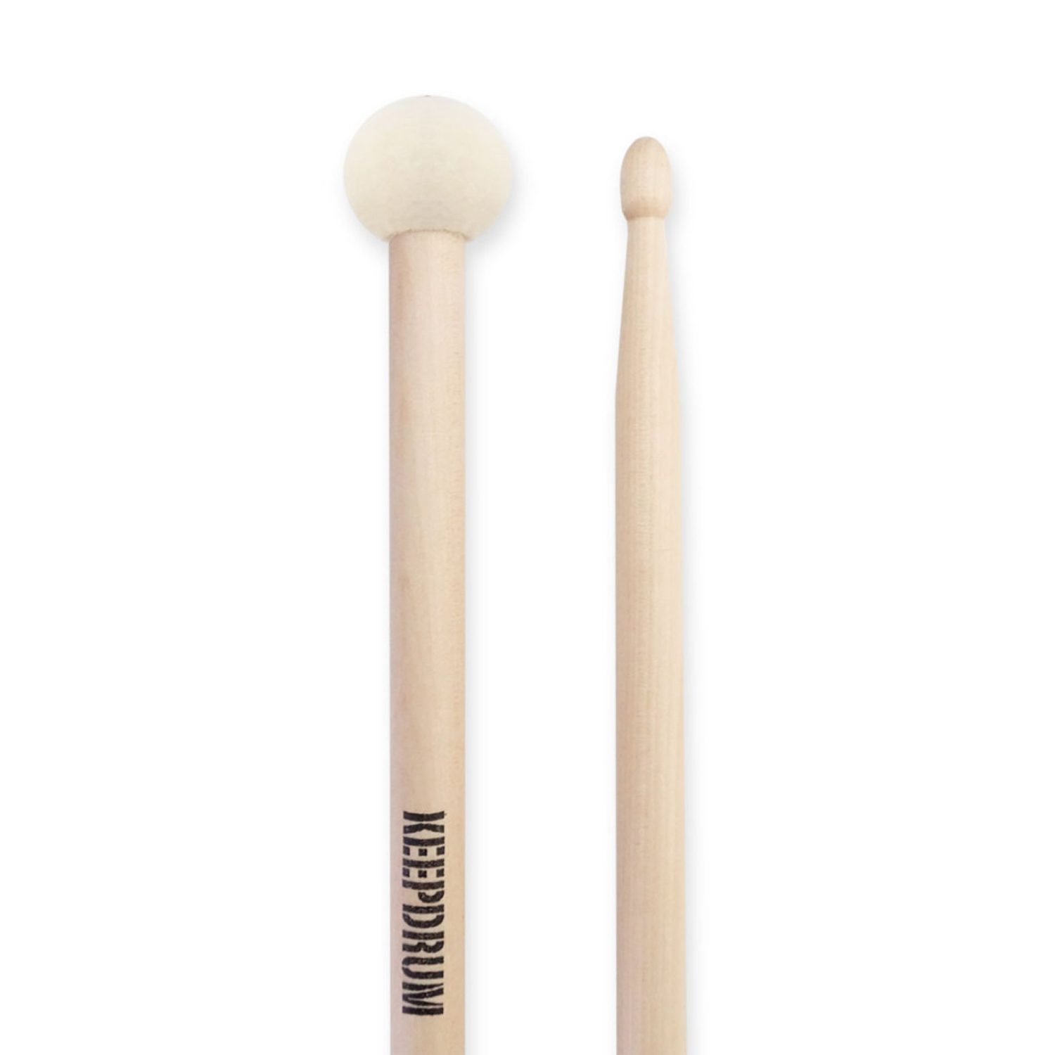Die keepdrum Doublesticks sind eine Kombination aus Trommelstöcken mit Holzköpfen und Filz-Schlägeln. Am unteren Ende der Drumsticks ist ein harter Filz-Kopf angebracht. Die Sticks eignen sich damit ideal für schnelle Wechsel zwischen Holz und Filz-Kopf. Dadurch lässt sich die Spielweise schnell anpassen und neue Klangfarben werden ermöglicht.