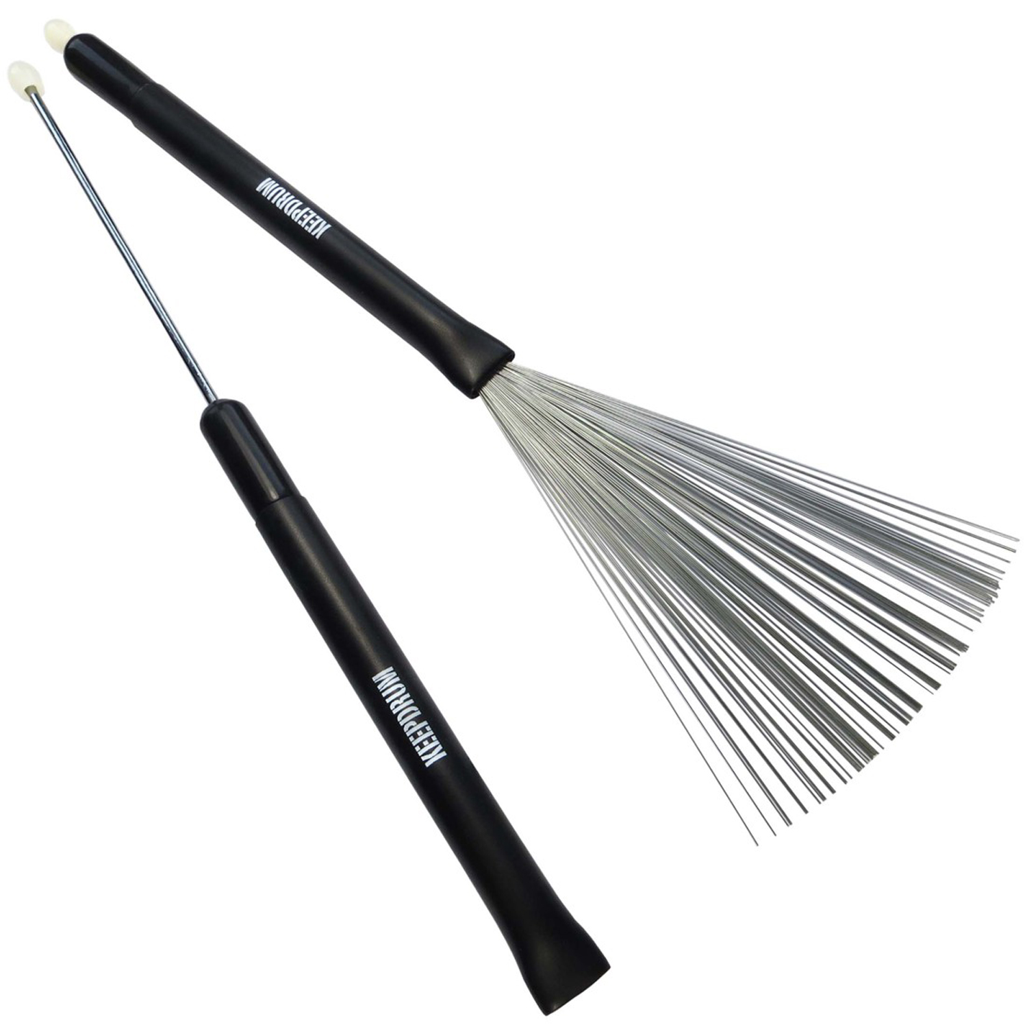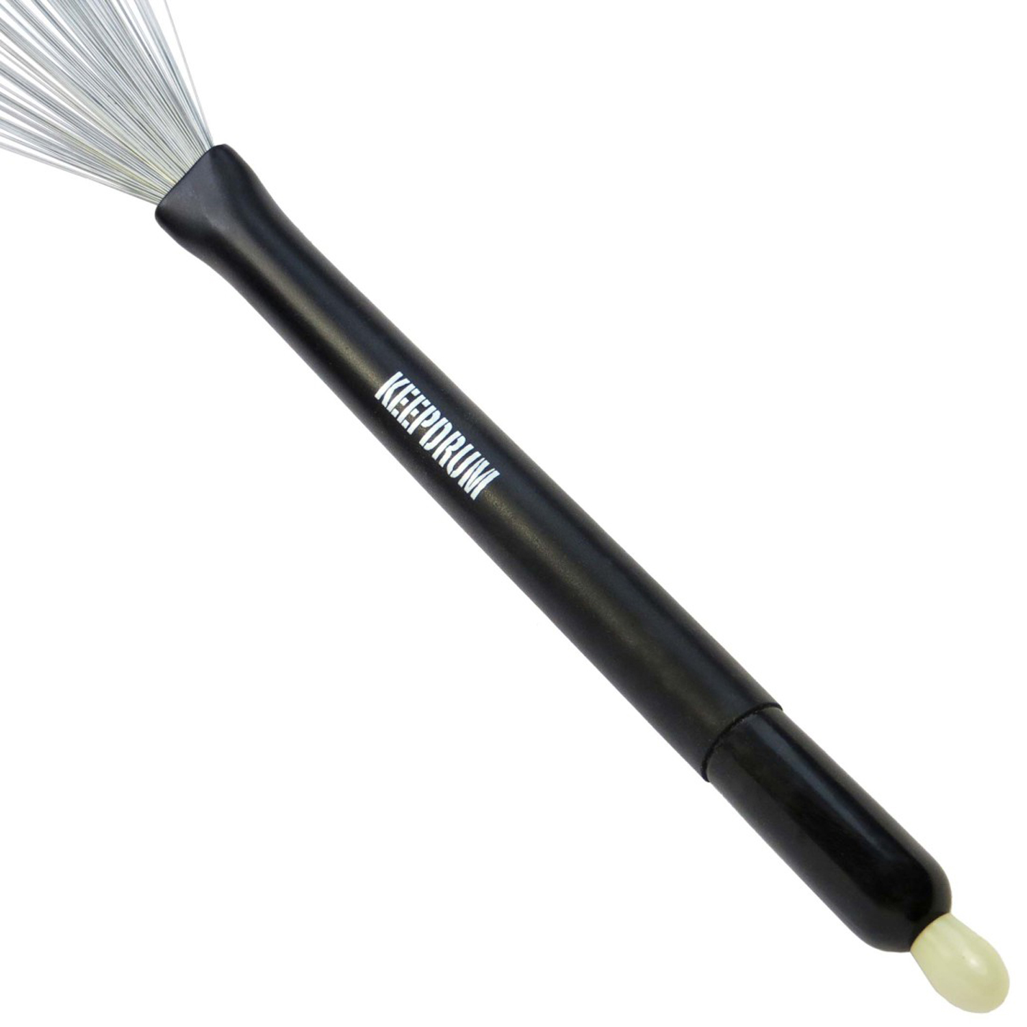 Die keepdrum Switch Brushes bieten die Möglichkeit zwischen Drumsticks mit Nylontip und Jazz-Besen zu wechseln. Je nach Bedarf wird der Besen oder der Drumstick ausgezogen. Das nicht benötigte Ende des Drumsticks verschwindet dabei im Griff. Ein ungewolltes Verrutschen des Griffes wird durch eine Einrastfunktion vermieden.Die Switch Brushes bieten ein sehr angenehmes Spielgefühl und eine gute Balance. Der Gummigriff bietet dem Spieler optimalen Grip. Die Nylon-Köpfe der Drumsticks liefern einen klaren definierten Anschlag, wobei die Metall Besen für den klassischen Jazz-Sound sorgen.Details: - 1 Paar