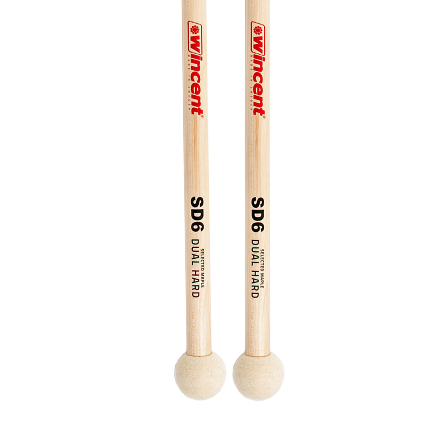 Die Wincent W-SD6 sind Double-Sticks bestehend aus Holzköpfen und Flizschlägeln mit einer Länge von 410 mm und einem Durchmseeser von 15,8 mm. Hergestellt sind die Sticks aus Ahorn-Holz.