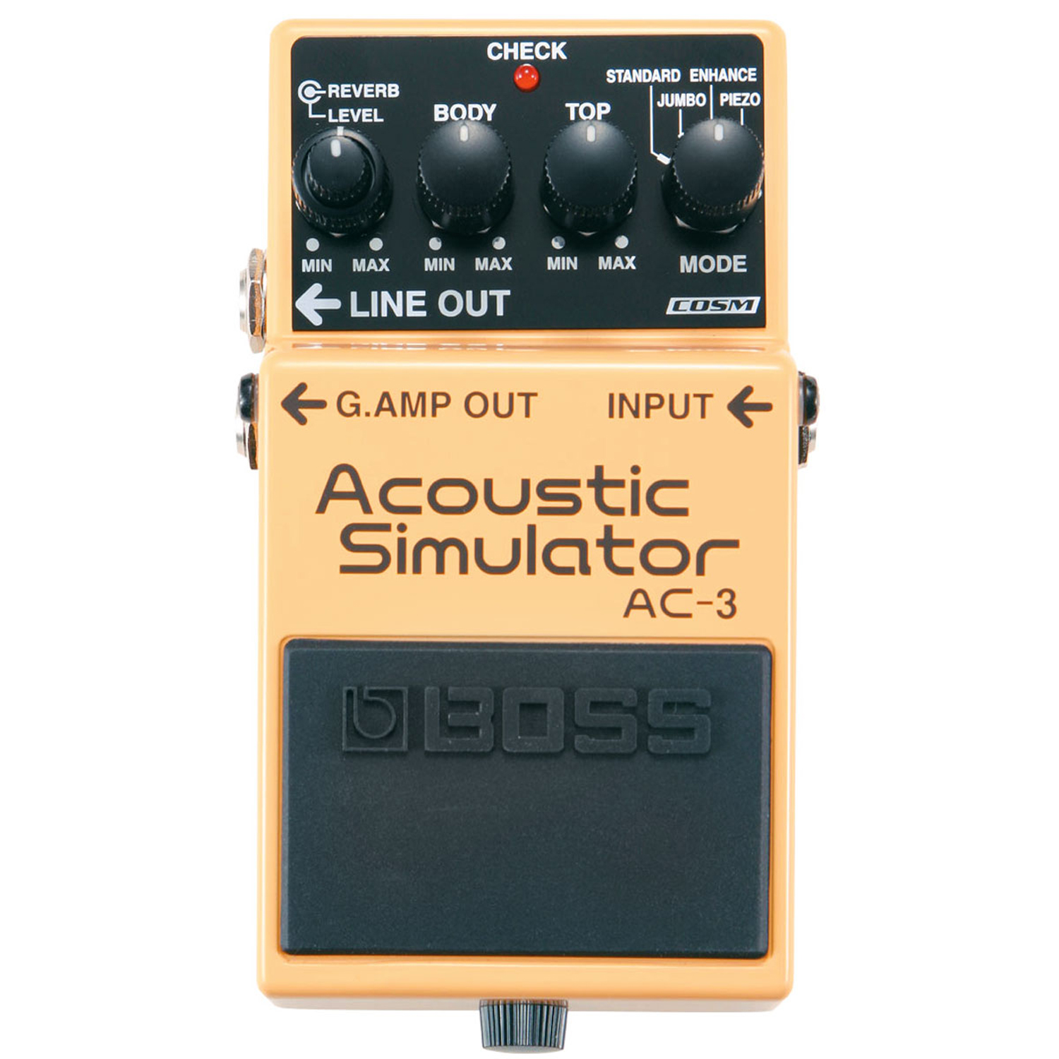 Der Boss AC-3 simuliert den typischen Klang einer akustischen Gitarre, wobei vier Simulations-Modi zur Verfügung stehen - Standard, Jumbo, Enhanced und Pieco. Um dem Sound zusätzlich Tiefe zu verleihen ist ein regelbarer Reverb-Effekt mit an Bord des AC-3 Acoustic Simulators.
