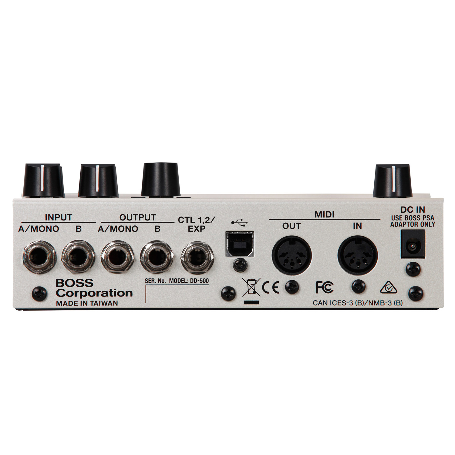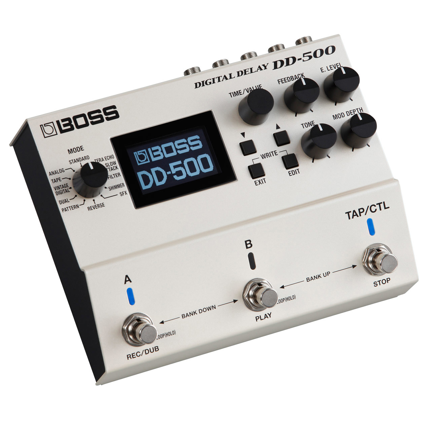 Mit zwölf verschiedenen Delay-Modi bietet das DD-500 eine Vielfalt an Echo-Optionen, von klassischen bis hin zu experimentellen Klängen. Es beinhaltet Standard, Analog, Tape, Vintage, Dual, Pattern, Reverse, SFX, Shimmer, Filter, Slow Attack und Tera Echo. Neben den Delay-Effekten beinhaltet das DD-500 auch einen eingebauten Phrase Looper, der 60 Sekunden lange Loopsequenzen ermöglicht. Die Benutzeroberfläche des Pedals, bestehend aus einer grafischen LCD-Anzeige und direkten Bedienelementen, erleichtert die Navigation und Anpassung der Effekte.