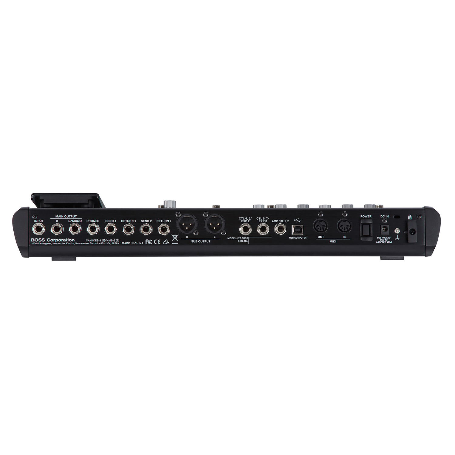 Das Gerät bietet umfassende Anschlussmöglichkeiten, einschließlich XLR-Anschlüssen, die die Notwendigkeit einer externen DI-Box überflüssig machen. So kann das GT-1000 direkt an eine PA, Mischpult oder ein Audio-Interface angeschlossen werden. Zudem verfügt es über zwei interne Effekt-Loops für die Integration externer Effektgeräte und unterstützt die Vier-Kabel-Methode zur flexiblen Einbindung in Verstärker-Setups.