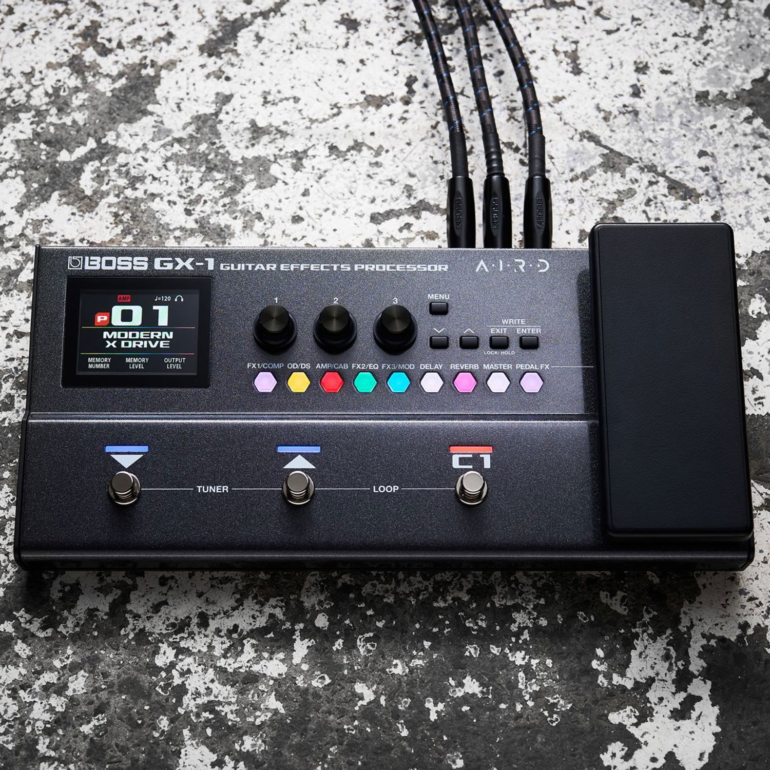 Dank des hellen, farbigen Displays und der intuitiv angeordneten Bedienelemente gestalten Sie Ihre Sounds blitzschnell und mühelos. Drei frei belegbare Fußschalter und ein integriertes Expression-Pedal mit Toe-Switch geben Ihnen auch live die vollständige Kontrolle über Effektwechsel und Parameter. Mit acht simultanen Effektblöcken, der Möglichkeit, eigene Impulsantworten (IR-Boxensimulationen) zu laden, und 99 benutzerdefinierbaren Speicherplätzen sind Ihrer Kreativität keine Grenzen gesetzt. Die inkludierte Gear-Suite-Funktion und der Zugang zur Boss Tone Exchange-Community machen das Feintuning und Teilen Ihrer Presets zum Kinderspiel.