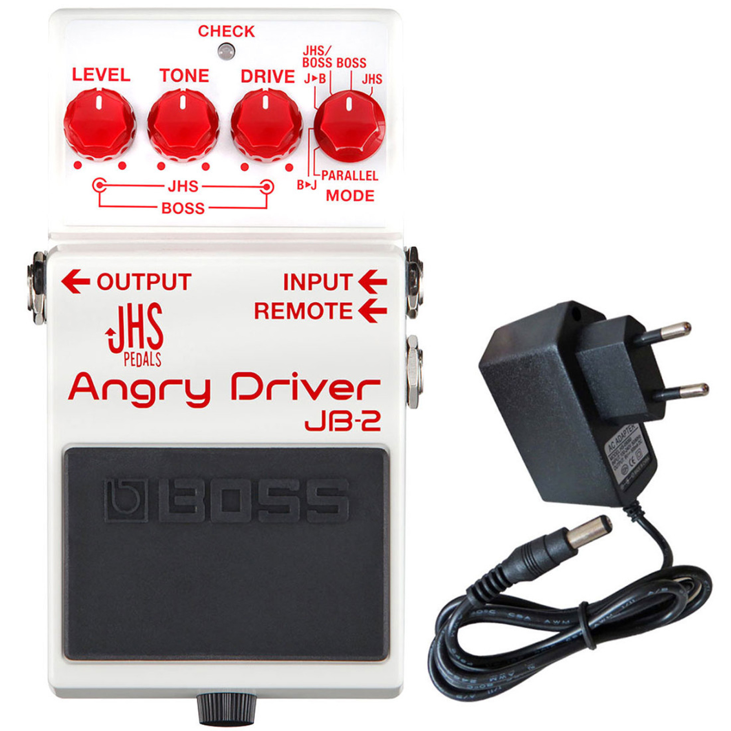 Der JB-2 beinhaltet den beliebten Boss BD-2 Blues Driver und das Angry Charlie Pedal von JHS in einem Pedal im klassischen Boss-Pedal Format. Die zwei Pedals können über den Mode Regler in 6 verschiedenen Modi genutzt werden.