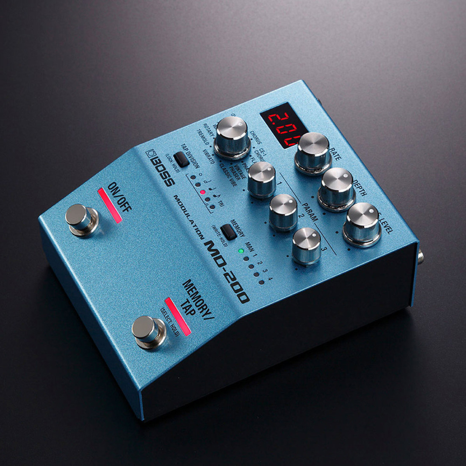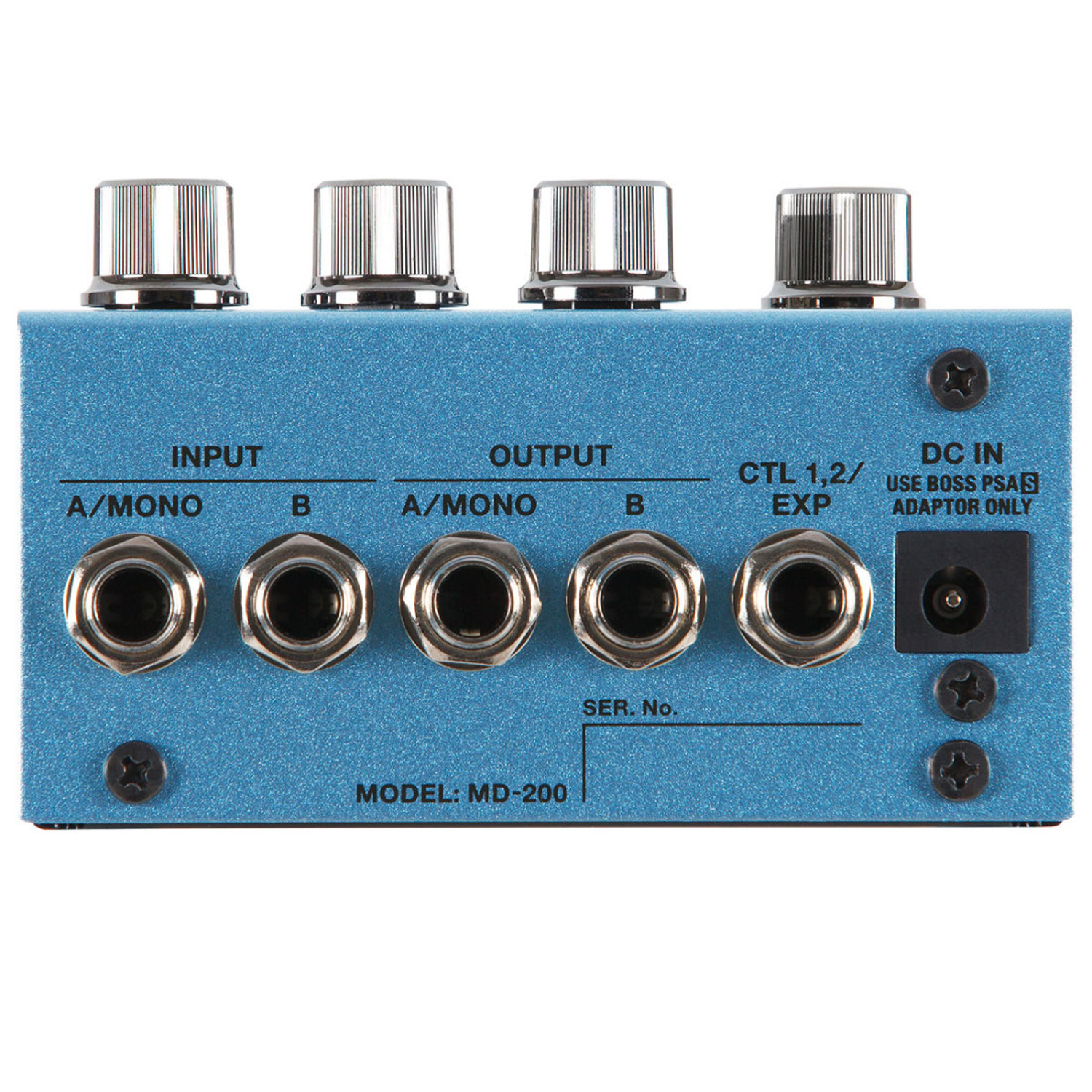 Mit dem MD-200bringt Boss ein enorm vielseitiges Kompaktpedal mit 12erstklassigen Effekten auf den Markt. Durch dieMultifunktionsschalter bleibt die Bedienung trotz des großesFunktionsumfangs einfach und intuitiv.