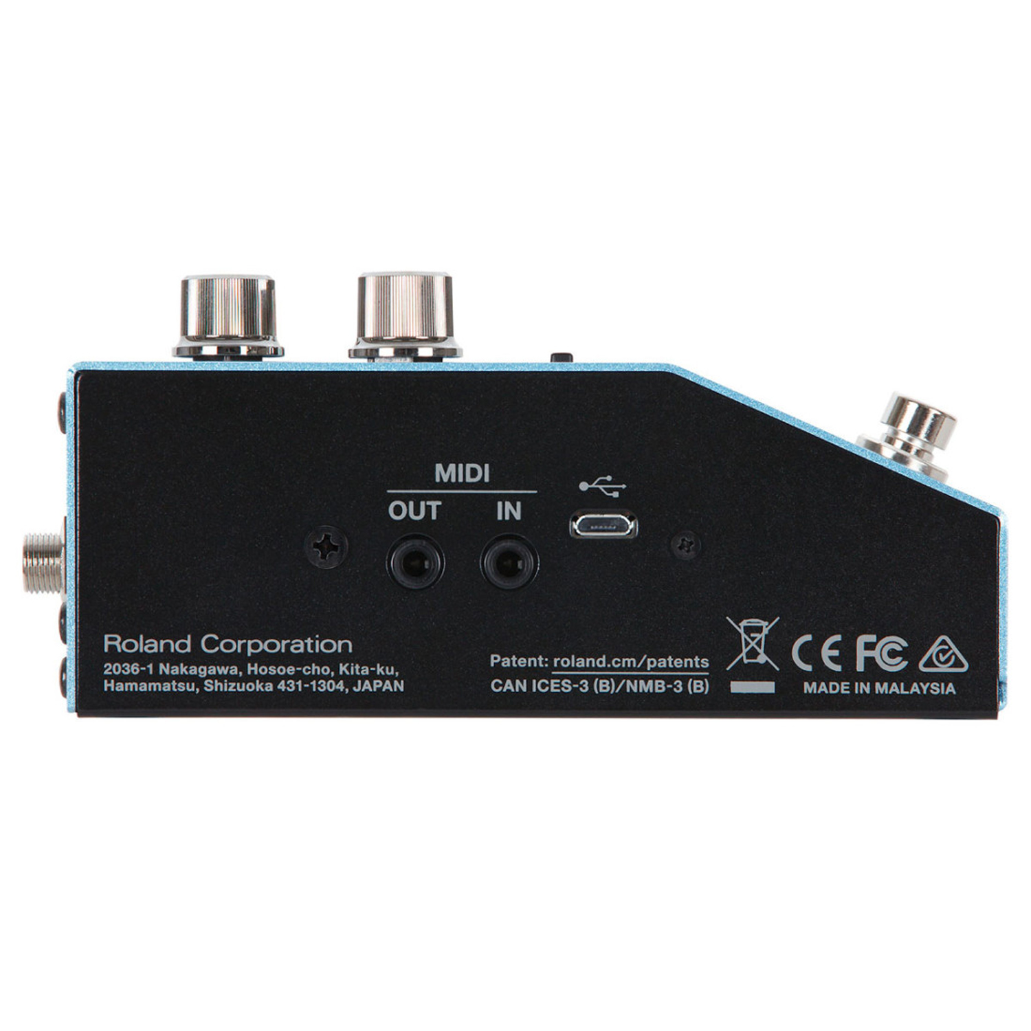 Rückseitig bietetdas MD-200 zwei 6,3mm Klinken-Eingänge sowie zwei 6,3mm Klinken-Ausgängeund eine Anschlussmöglichkeit für einen optionalerhältlichen Fußschalter oder ein Expression-Pedal. Zur erweitertenSteuerung kann das MD-200 sogar mit MIDI gesteuert werden (benötigtoptional erhältliches Adapterkabel BMIDI-5-35).