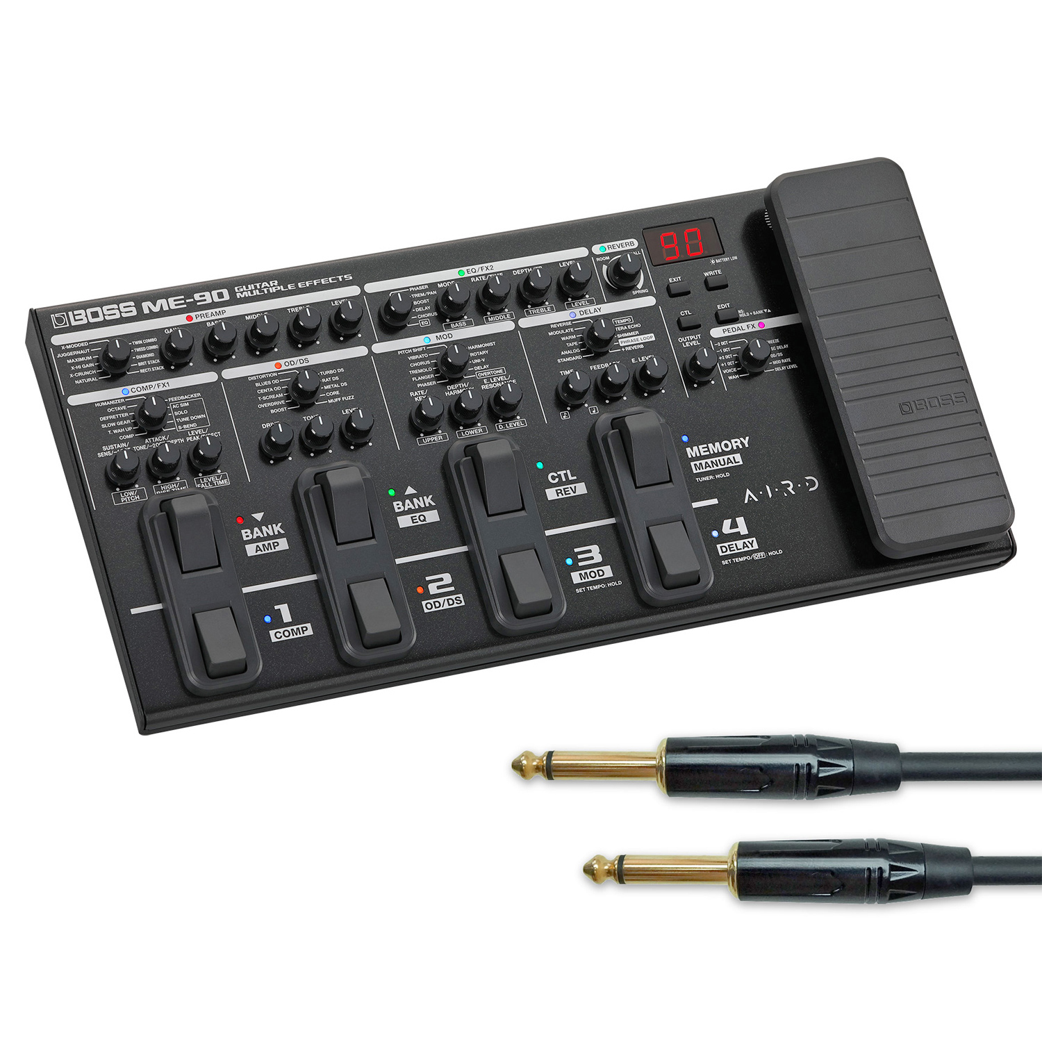 Das ME-90 bietet 7 Effektkategorien mit zahlreichen Effekten aus dem Topmodell GT-1000 wie Overdrives, Distortion-Effekte, Pitch/Mod-Effekte, Delays sowie Reverb-Effekte. Die insgesamt 60 Effekttypen lassen sich über das Boss Tone Studio um über 20 Effekte erweitern. Über den Send/Return-Loop können externe Pedale angeschlossen werden.